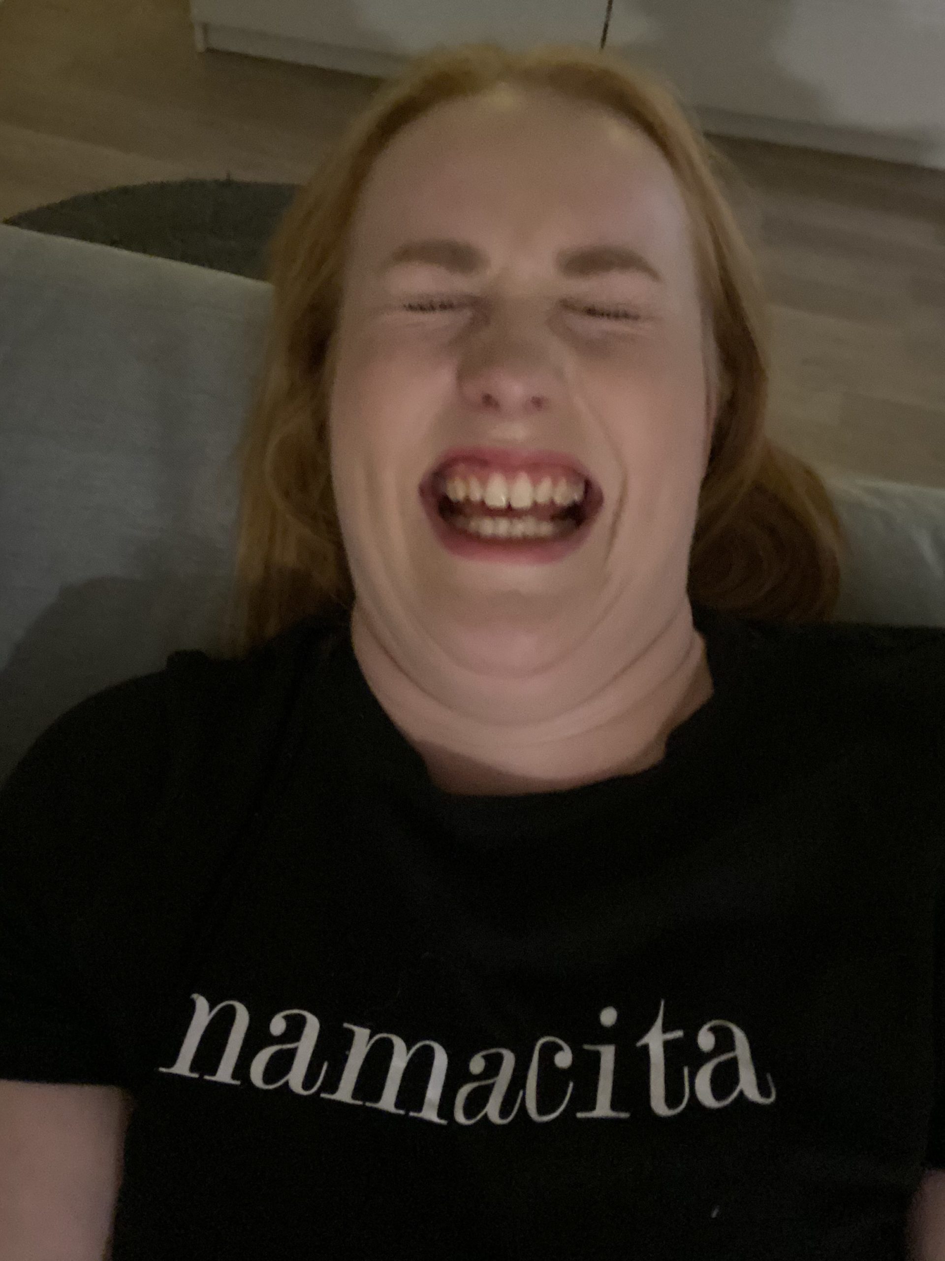 Tämä ehdottomasti! Siis aivan kamala ja silti niin totta! Tältähän sitä näyttää, kun on hauskaa. Kuva on syntymäpäiväjuhliltani, kun lähes kaikki olivat lähteneet ja kaksi ystävistäni jäi yöksi. Vaihdoimme jo juhlavaatteet pois ja istuimme sohvalla juttelemassa. Siinä sitten innostuimme kokeilemaan uutta selfie-keppiäni ja otimme kaverikuvia sillä. Testivaiheessa minä pitelin keppiä ja ystäväni painoi kaukosäätimestä, tämä kuva syntyi siitä. Teimme ihan kamalia ilmeitä ja nauroimme pissat housussa. Muutama drinkki alla, niin tämähän oli maailman hauskinta hupia.