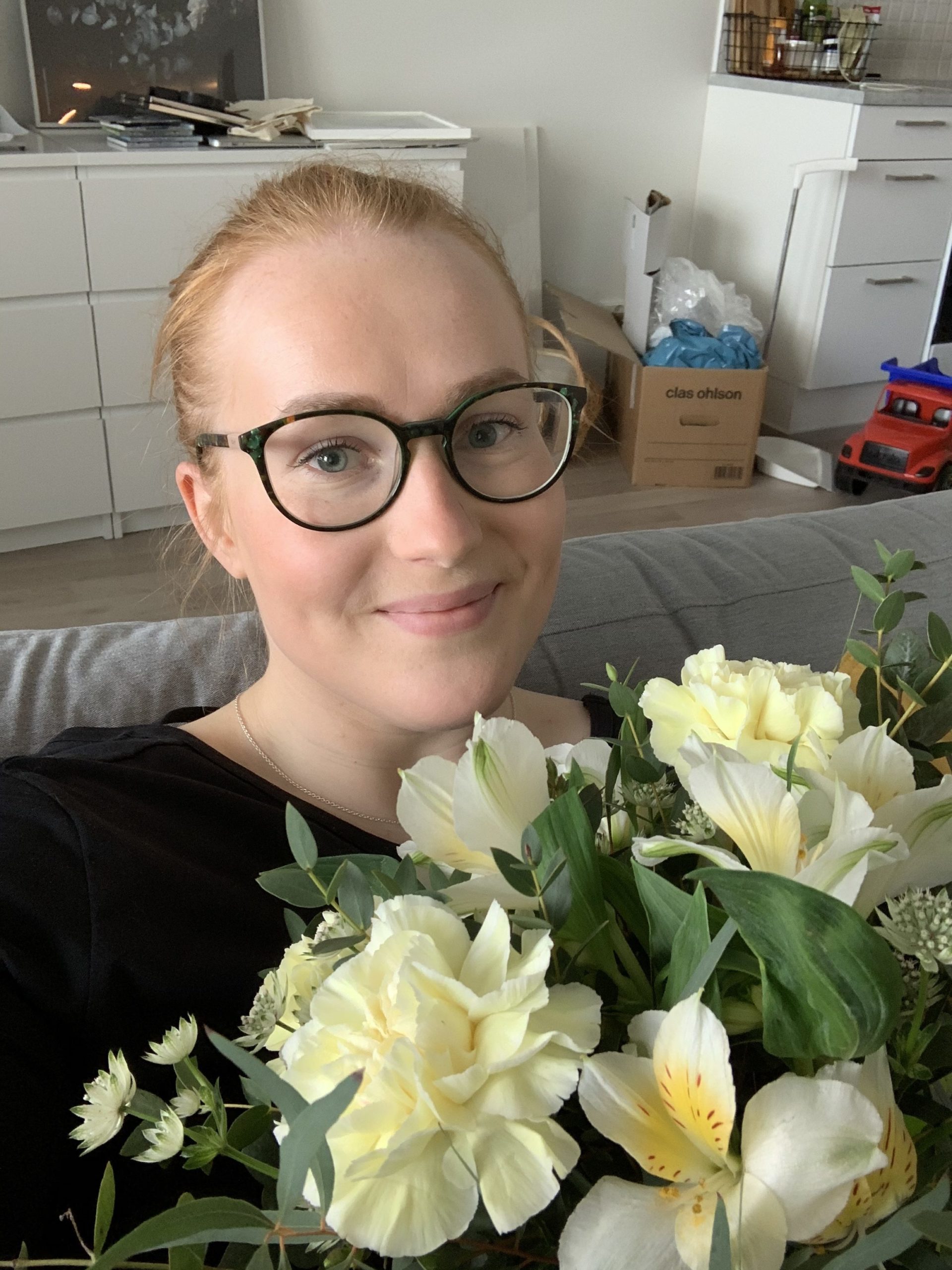 Muuttooni liittyi paljon yllätyksiä ystäviltä. Yhdet ystävät ostivat minulle lahjaksi loppusiivouksen edelliseen asuntooni. Muutimme pahinten korona rajotteiden aikaan ja monet eivät päässet fyysisesti apuun, mutta halusivat auttaa jollain muulla tavalla. Ensimmäisenä päivänä uudessa kodissa, ovi kello soi ja sain kukkalähetyksen yhdeltä toiselta ystävältä. Oli aivan ihana yllätys! Uusi koti ja uudet kukat!