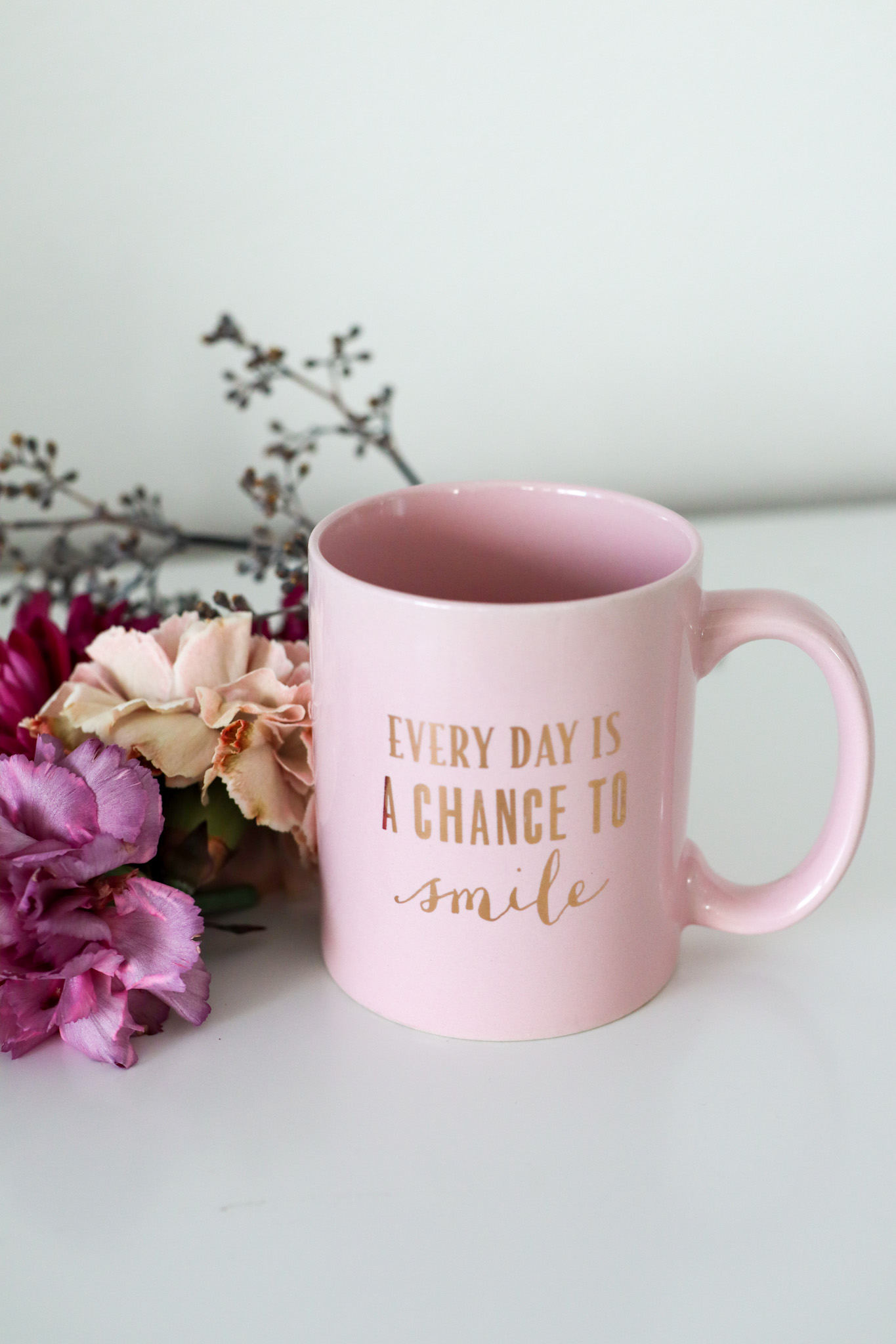 Tätä mukia käytän oikeastaan harvemmin kuin kahta edellistä, mutta siitä huolimatta se on erityisen rakas. Muki on ihanan vaaleanpunainen ja siinä on kullattu teksti. Se miksi tämä muki koskettaa minua erityisesti, on sen tarina. Olin juuri muuttanut Englantiin ja luopunut lähes kaikista tavaroistani tai jättänyt ne Suomeen. Minulla oli kamala koti-ikävä ja paha olla.