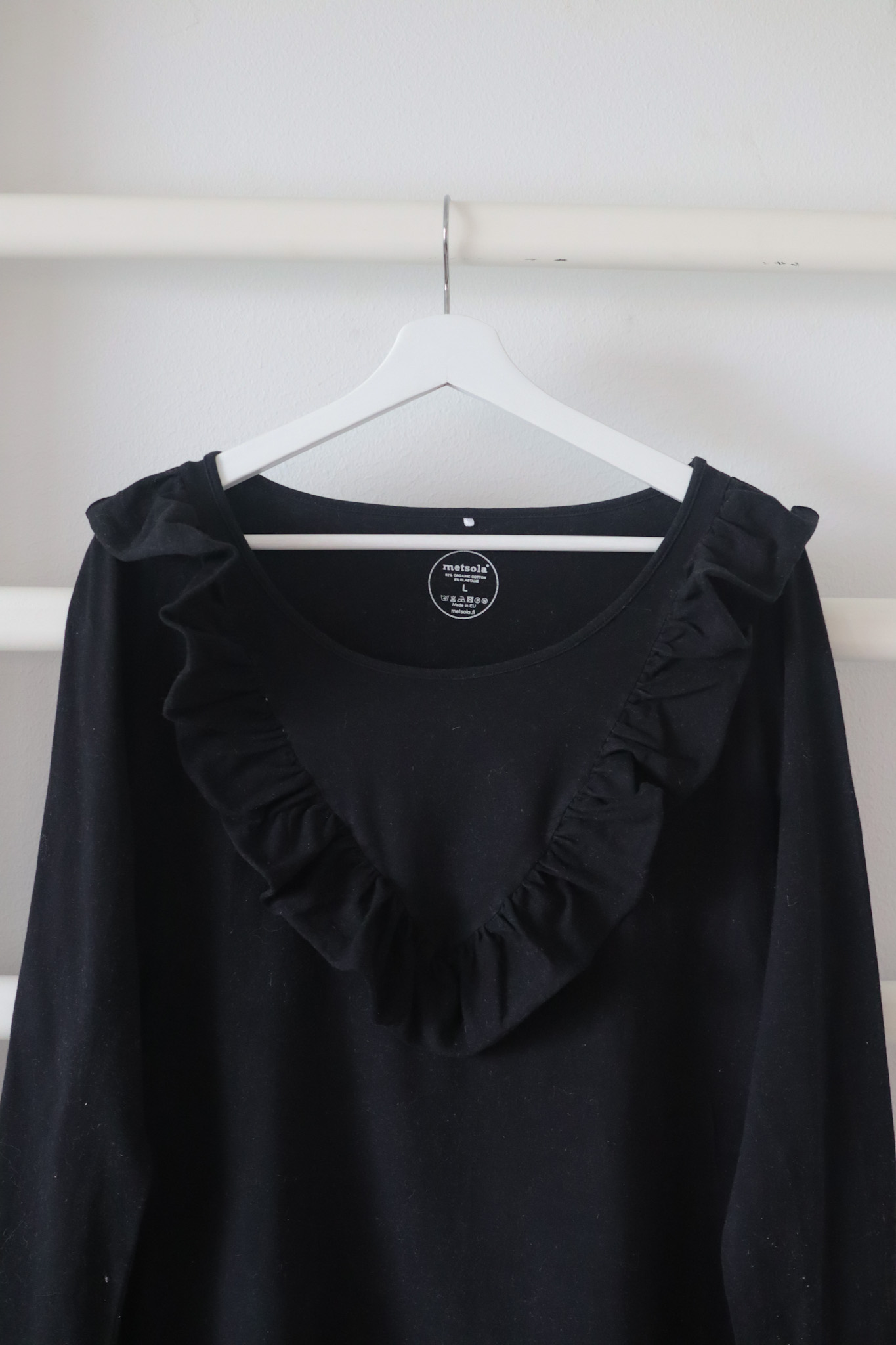Tämä on todella ihana vaate ja miellän tämän syksyvaatteeksi. Tässä on pitkät hihat ja värikin on musta, eli juuri sopiva pimeään aikaan! Joinain aamuna vain musta on se kaikkein parhain valinta. Ihanat röyhelöt tekevät tunikasta naisellisen ja pehmeän, vaikka väri onkin kova. Tunikan kanssa voi ola hyvin farkut, sukkikset tai legginssit. Vaihtoehdot tuovat asuun vaihtelua.