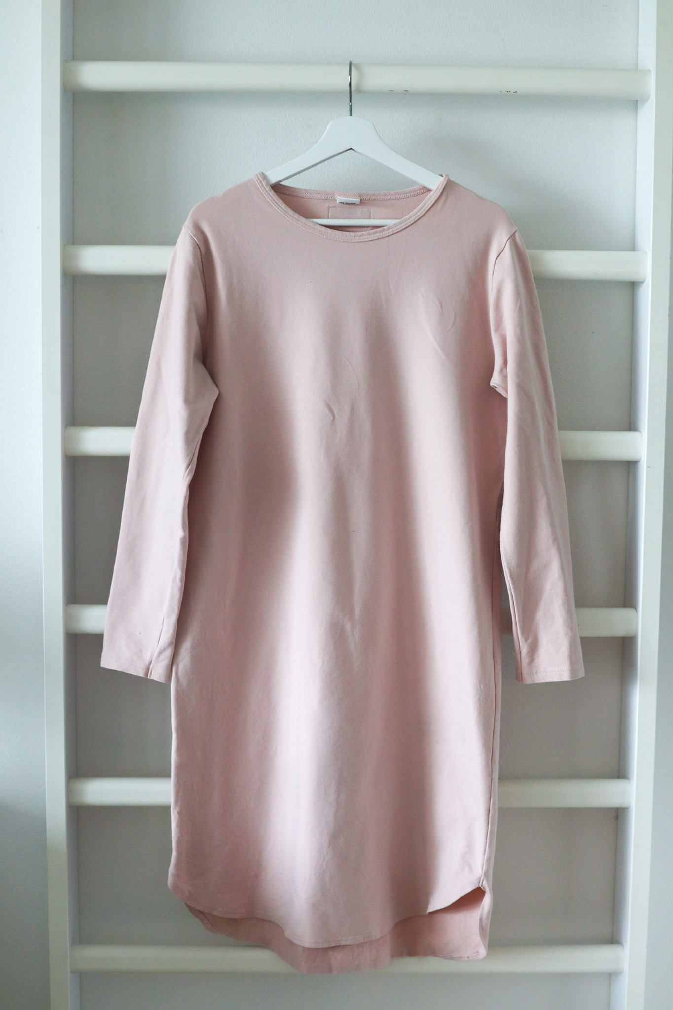 Tämä tunika ei pääse kyllä oikeuksiinsa henkarissa, mutta on aivan ihana päällä. Tunika on paksumpaa kangasta, collegea. Lisäksi se on sopivan pitkä ja takaa vielä pidempi kuin edestä, eli ideaali lasten kanssa leikkiessä ja touhutessa. Käytin tätä todella paljon ollessani töissä päiväkodissa. Nyt oikein odotan, että pääsen taas käyttämään tätä vaatetta!