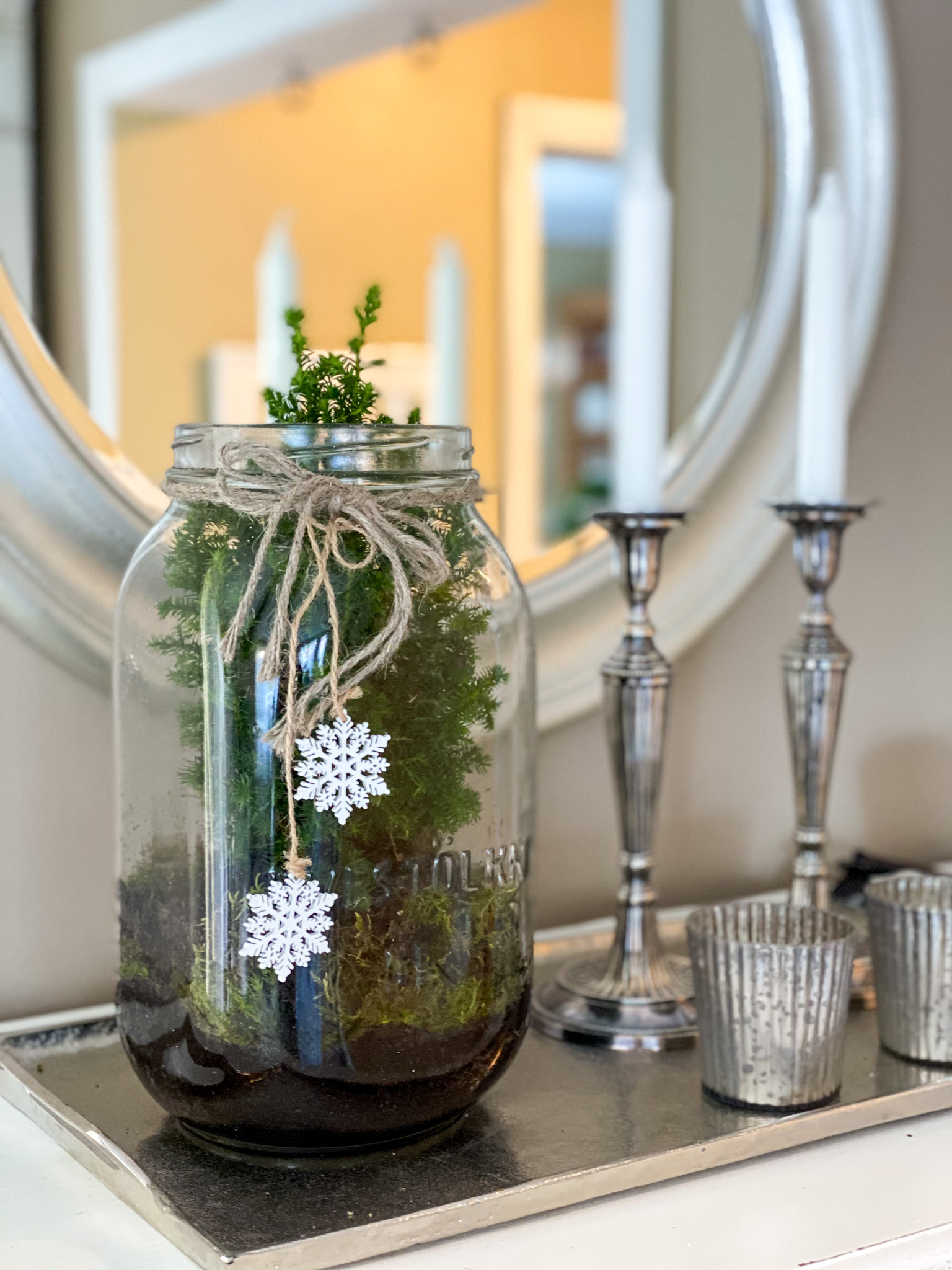 Maljakoita ja isoja lasipurkkeja löytyy kirpputoreilta, kierrätyskeskuksista ja kontti-myymälöistä tosi edullisesti. Sypressit ovat edullisia tai sypressin sijaan voi valita jouluruusun tai hyasinttejä. Ne ovat todella kauniita joulukukkia. Paljon muuta ei tarvitse, mielestäni yksinkertainen asetelma on kaunis. Vähän sammalta ja halutessa käpyjä tai kaunista nauhaa lasipurkin ympärille!