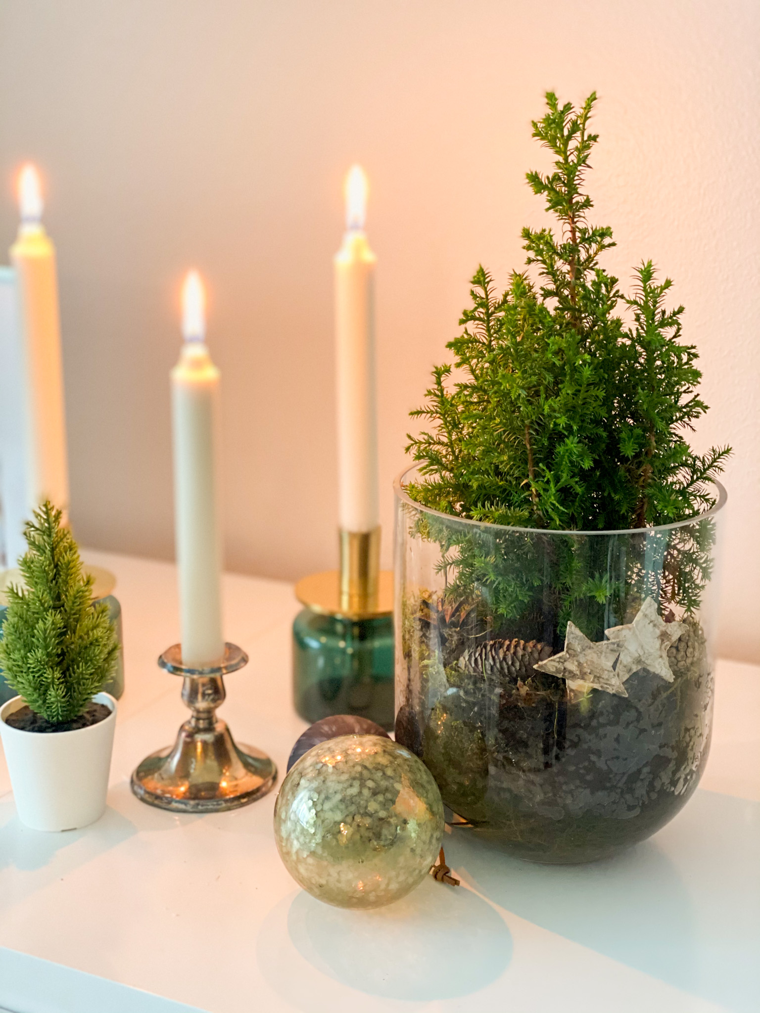 Meillä on äitini kanssa tosi yhtenävä maku. Äitini on sisustuksessa runsaampi, pehmeämpi ja täyteläisempi ja minä taas pelkistetympi ja yksinkertaisempi. Mutta monissa asioissa maku kohtaa ja meillä on paljon yhtäläisyyksiä. Molemmilta löytyi esimerkiksi ihan samanlainen jouluasetelma!