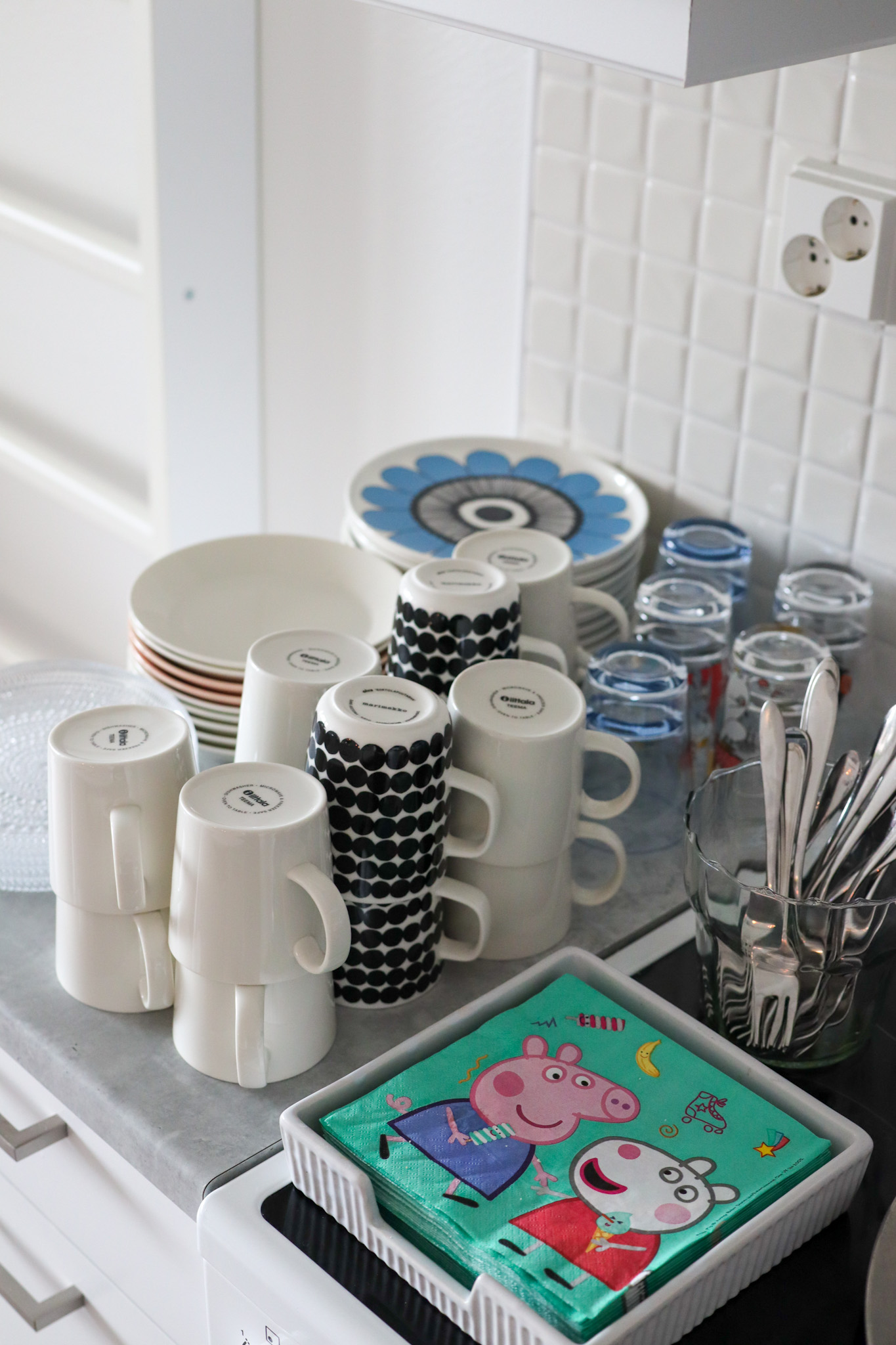 Tein jälleen tietoisen päätöksen, että käytän rahani ja voimavarani tarjottaviin. Tämän takia meillä ei ollut ilmapallojen ja viirin lisäksi muita koristeita eikä kertakäyttöastioita. Suurena syynä tässä painoi rahan lisäksi myös vastuullisuus. Koristeet ja kertakäyttötavarat päätyvät usein roskiin ja niistä syntyy paljon jätettä.