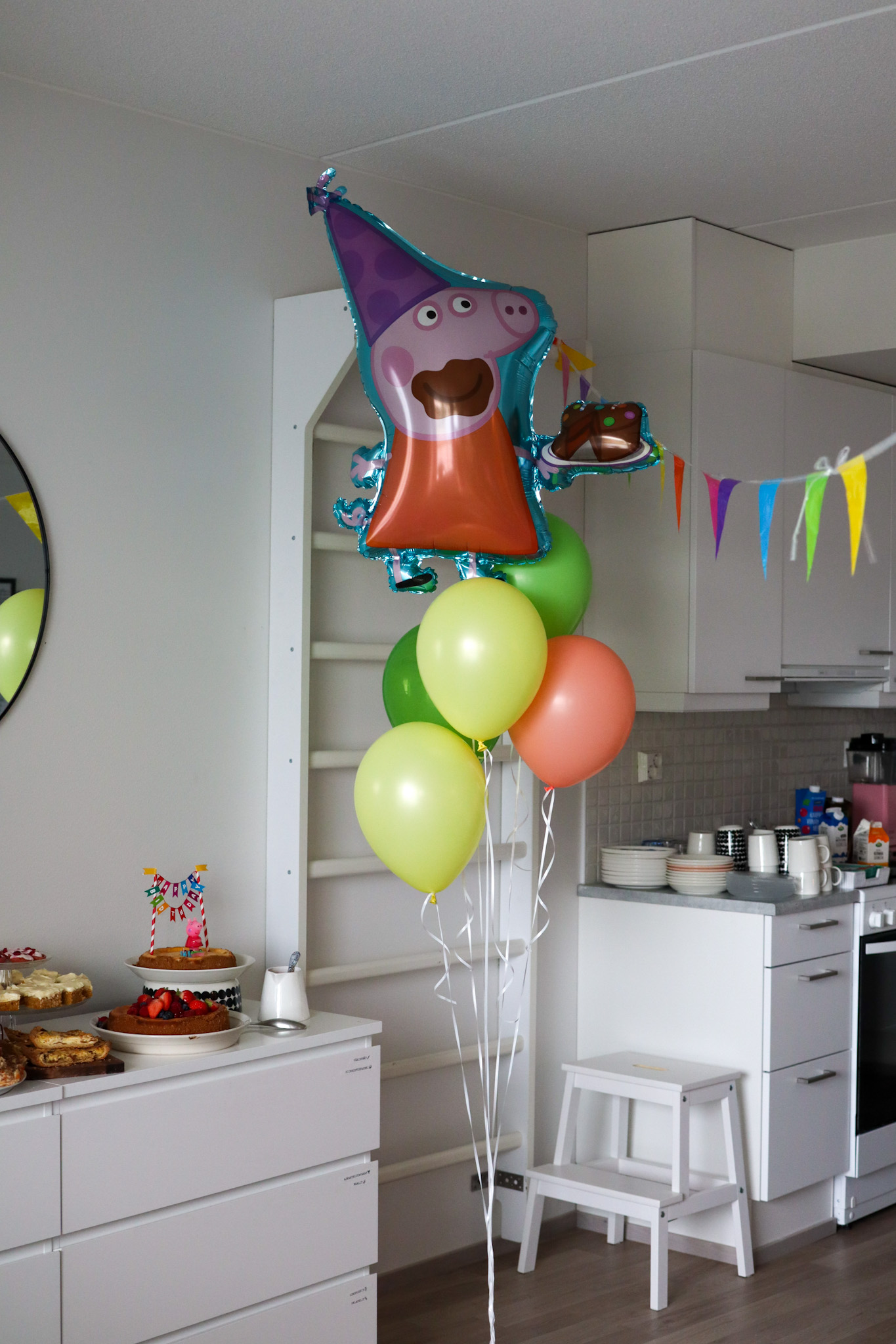 Ihanat juhlat ja tarjoilut! Minä ostin ekoille synttäreille puhallettavat foliopallot, joista tulee lapsen nimi. Youtubesta löytyy video pallovalmistajan kanavalta, miten ne saa tyhjäksi. Ja nämä ja muut koristeet tosiaan on samoja joka synttäreillä. Ostan lisäksi aina uutena puhallettavan folionumero-pallon, jonka kierrätän naapuriin juhlien jälkeen. Servetit lapsi on saanu valita ja kakkua on mietitty yhdessä, mutta nuo synttärikoristeet on hällekin selviö että samat laitetaan aina. Kiitos myös ihanista lastenkirjaesittelyistä, niitä lukee tosi mielellään.