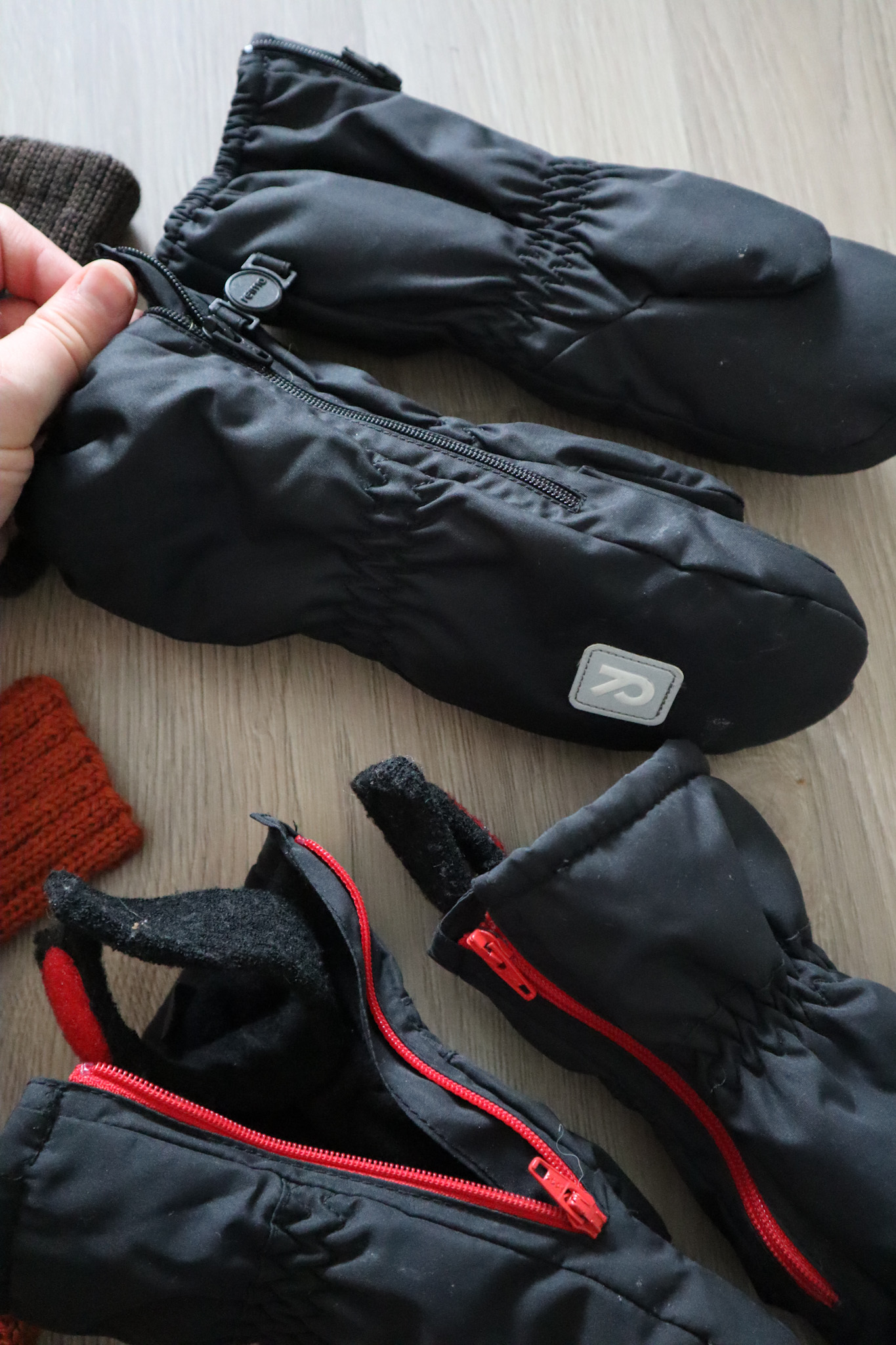 Talvihanskoja en ostanut tänä vuonna, vaan Eemille menee viime talveksi ostamani hanskat. Ostin silloin uutena Reiman vetoketjulliset toppahanskat, joita meillä on kaksin kappalein ja Polarn o Pyretin vetoketjulliset hanskat. Jälkimmäiset olivat viime talvena paremmat, sillä niissä oli ranteen ympärille tule kiinnitys, joka sai hanskan pysymään paremmin kädessä ja helpotti pukemista. Reiman hanskat oli vähän suuret viime talvena, mutta nyt molemmat kyllä pääsevät käyttöön.