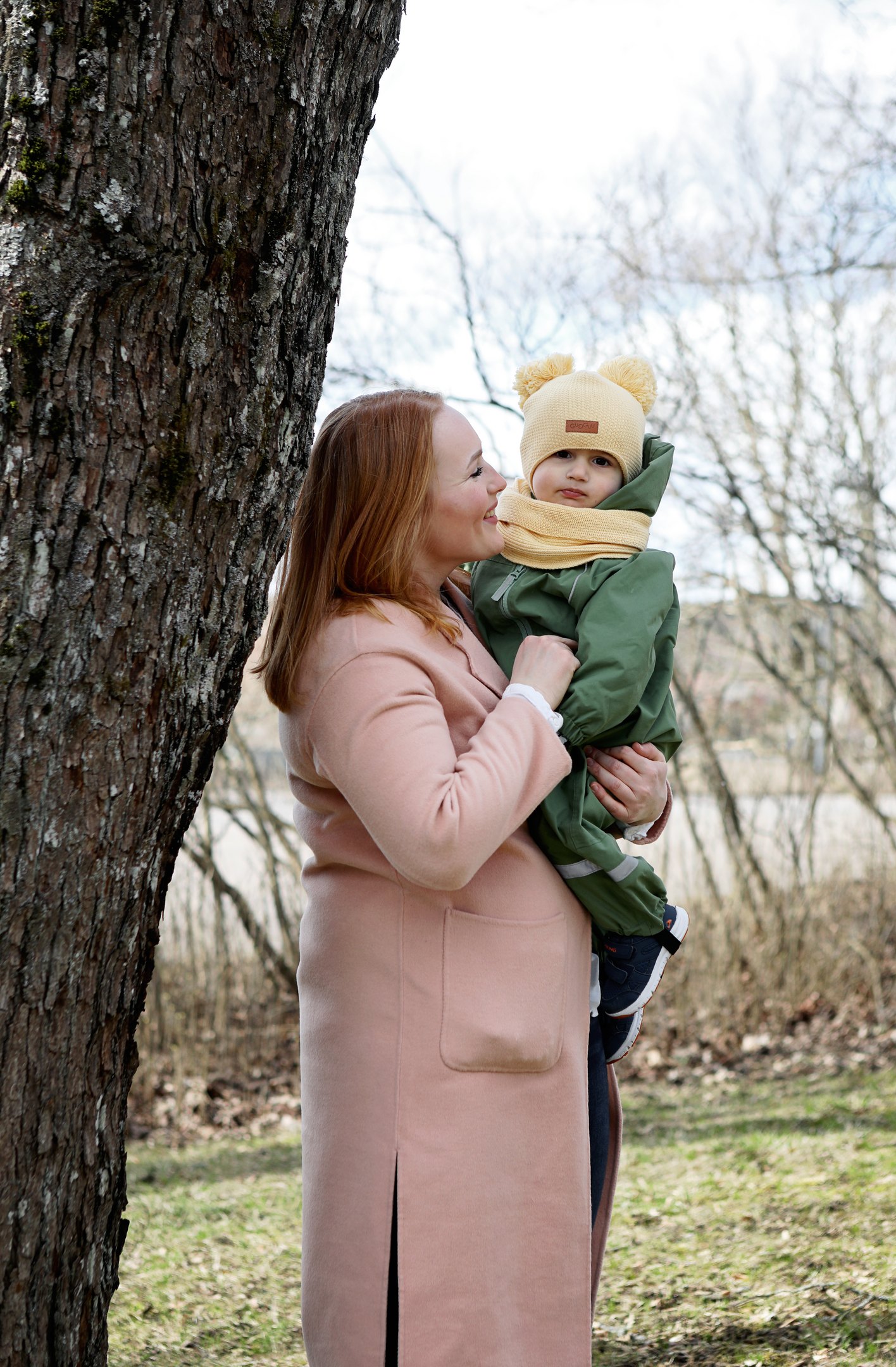 Kuitenkin olisi pitänyt muistaa, ettei omasta mielestäni lapsi tarvitse kakkoshaalaria, jos on ulkohuosut ja takki olemassa. Jos käy pissavahinko ja haalari ei kuivuisi seuraavaan päivään jostain syystä, niin ulkohousut toimisi hyvin varana. Huomasin saman jo keväällä, että silloin Popin vihreä haalari oli ns. varahaalari ja eipä sitä juuri käytetty. Se on kamalaa, kun välillä iskee suuruuden hulluus ja kaikkea tarvitsisi olla monta. Vaikka kuinka saisi käytettynä, niin tavaroiden jemmailu ei ole kovin ekologista.