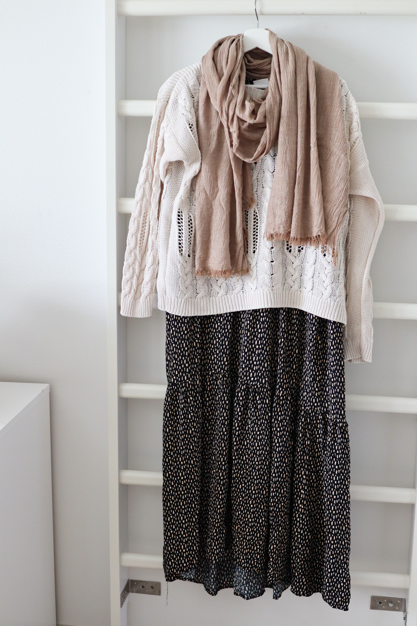 Elokuussa kävin kahdesti kirppiksellä. Yhden kerran Eemelin kirppiksellä ja yhden kerran Murulassa. Eemelin kirppikseltä löysin itselleni kokonaisen asukokonaisuuden, mekon, neuleen ja huivin. Mekkoa kaduin heti ostettuani sen. Se maksoi 15 euroa, eli oli mielestäni aika kallis. Lisäksi se oli koko 40 ja oletettaen liian pieni minulle. Taas yksi liian pieni mekko kaappiin. Mutta se maktuikin päälleni ja oli aivan täydellinen! Ehdottomasti tuleva syksyni ykkösmekko.