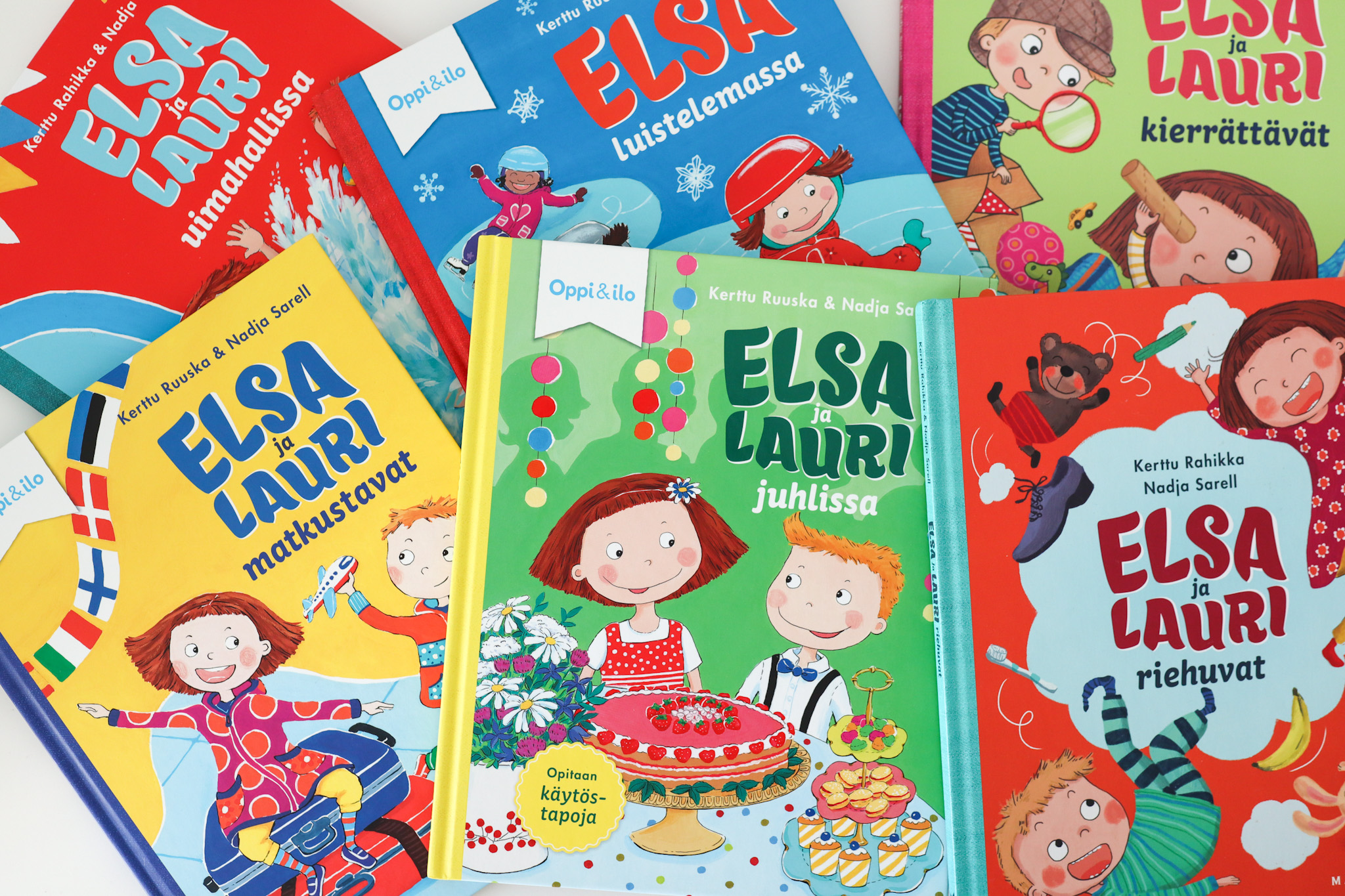 Kirjoissa seikkailee päiväkoti-ikäiset sisarukset, Elsa ja tämän pikkuveli Lauri. Kirjoissa paneudutaan aina johonkin arjen tilanteeseen, joita lapset kohtaavat. On uimareissua, juhlia ja matkustamista, tilanteita suoraan lasten maailmasta. Tarina on kiinnostava ja kuvitus tekee tarinaa vahvasti. Kirjoissa on paljon arkisia, samaistuttavia asioita. Ollaan lähdössä juhliin, koti on kaaos, isä silittää paitaa, kun pitäisi jo lähteä, Lauri ei halua pukea housuja ja päiväkotipäivän jälkeen lapset riehuvat, nukkumaan mentäessä aloittavat tyynysodan ja väsymyksestä ei ole tietoakaan.
