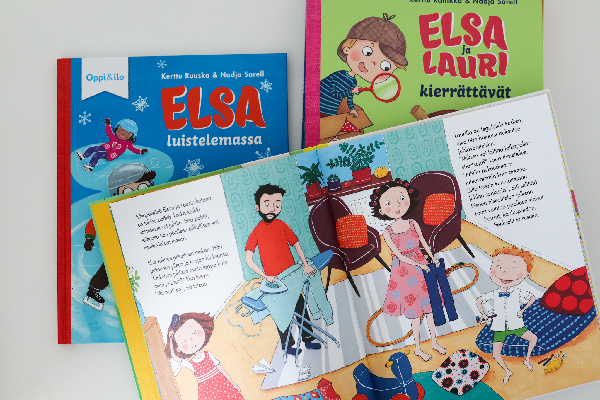 Elsa ja Lauri -kirjasarjan (Mäkelä) löysin tänä keväänä. Nyt juuri ilmestyi sarjan 7. kirja Elsa ja Lauri kierrättävät (Mäkelä, 2020). Jo ensi vilkaisulta sarja ihastuttaa. Kirjat on kirjoittanut varhaiskasvatuksen opettaja ja kasvatustieteiden maisteri Kerttu Rahikka, joka on töissä varhaiskasvatuksessa. Kirjat on kuvittanut Nadja Sarell, joka on kuvittajana ihan omaa luokkaansa.