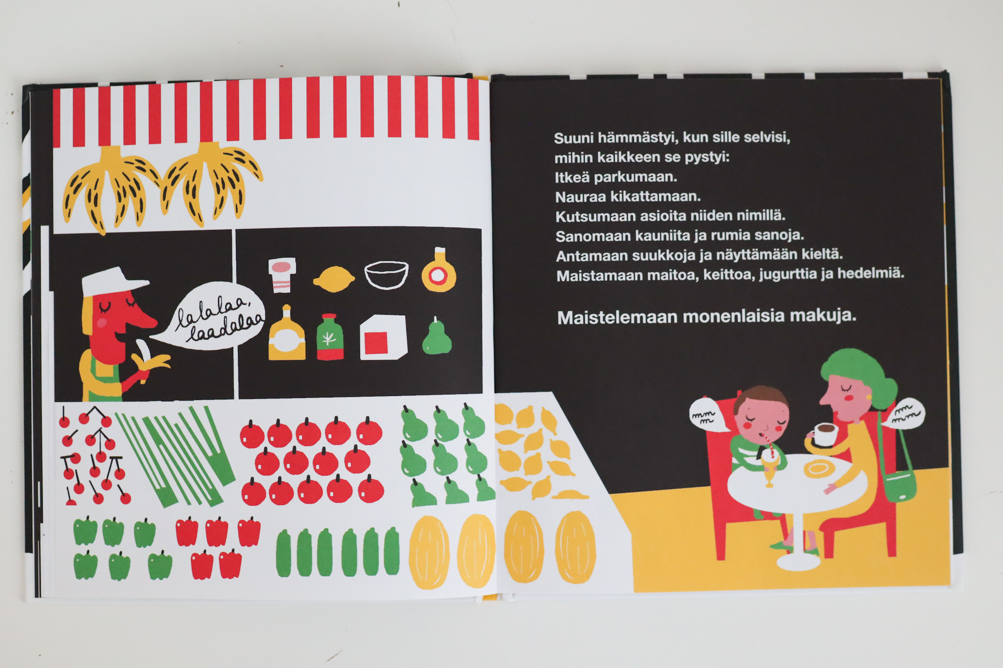 Kirja on siis jotain hyvin ainutlaatuista ja se on huomattu maailmanlaajuisesti. Kirja on hyvin yksinkertainen, mutta silti niin paljon puhuva.  Kirjan teksti ja kuvitus ovat yhtä, ne yhdessä kertovat tarinaa. Ilman toista ei olisi toista ja siinä mielessä tekijöiden välinen ystävyys näkyy kirjassa. Kirja on kuvitukseltaan selkeä ja siinä on voimakas väritys. Pienten lasten, jo ihan pienten vauvojenkin, on helppo katsoa kuvia ja nähdä sieltä kirkkaita värejä. Mustavalkoisella pohjalla on punaista, vihreää, pinkkiä ja keltaista.