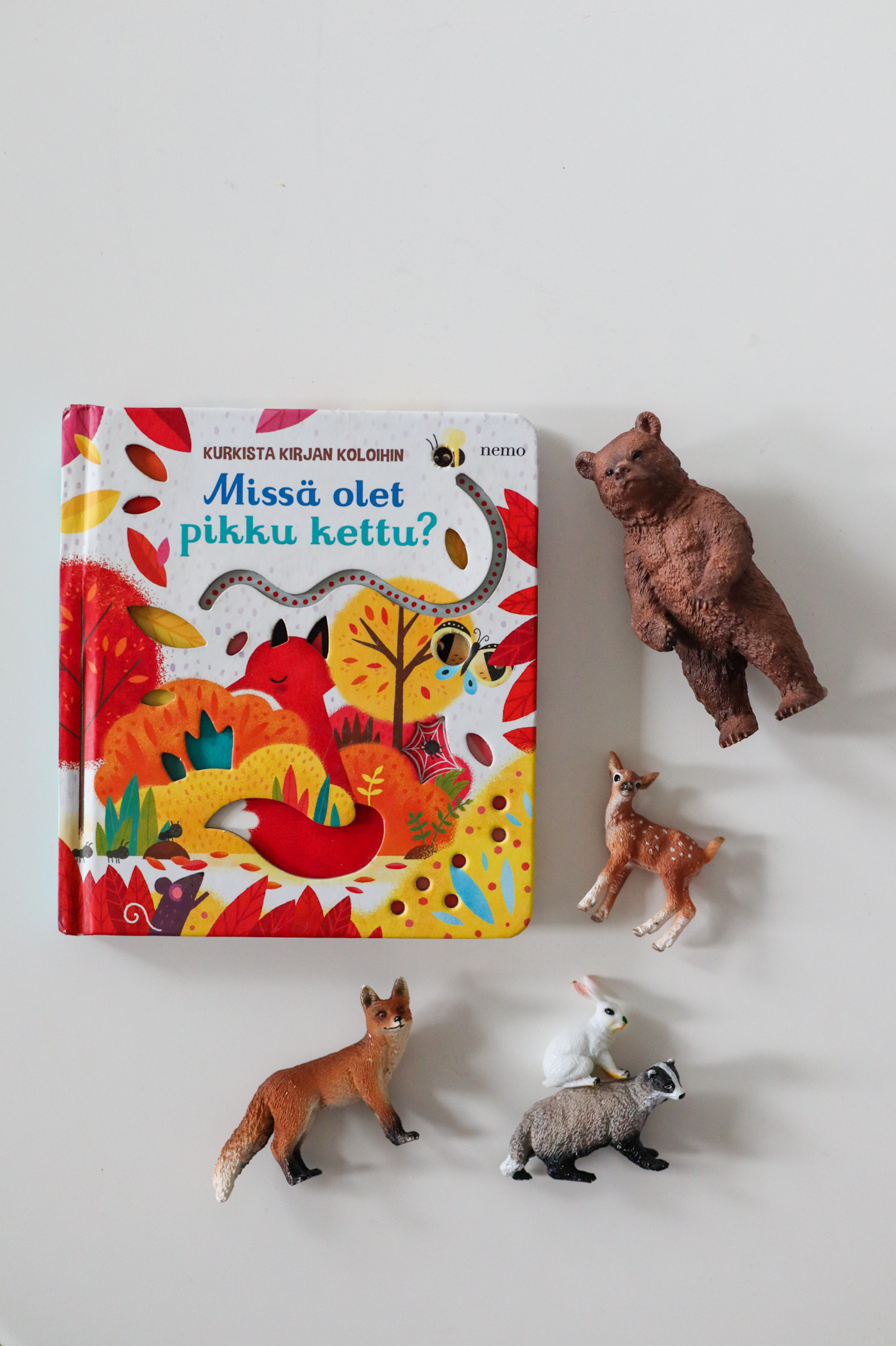 Tässä on aivan ihana kirja! Ostin tämän Eemille jo ennen kuin hän oli syntynytkään. Missä olet pikku kettu -kirja (2028, nemo) on mieletön ensikirja jokaiselle vauvalle, mutta sitä lukee todella mielellään myös taapero. Kirja on ihan loistava lahjaideakin vauvakutsuille, ristiäisiin tai ensilahjaksi.