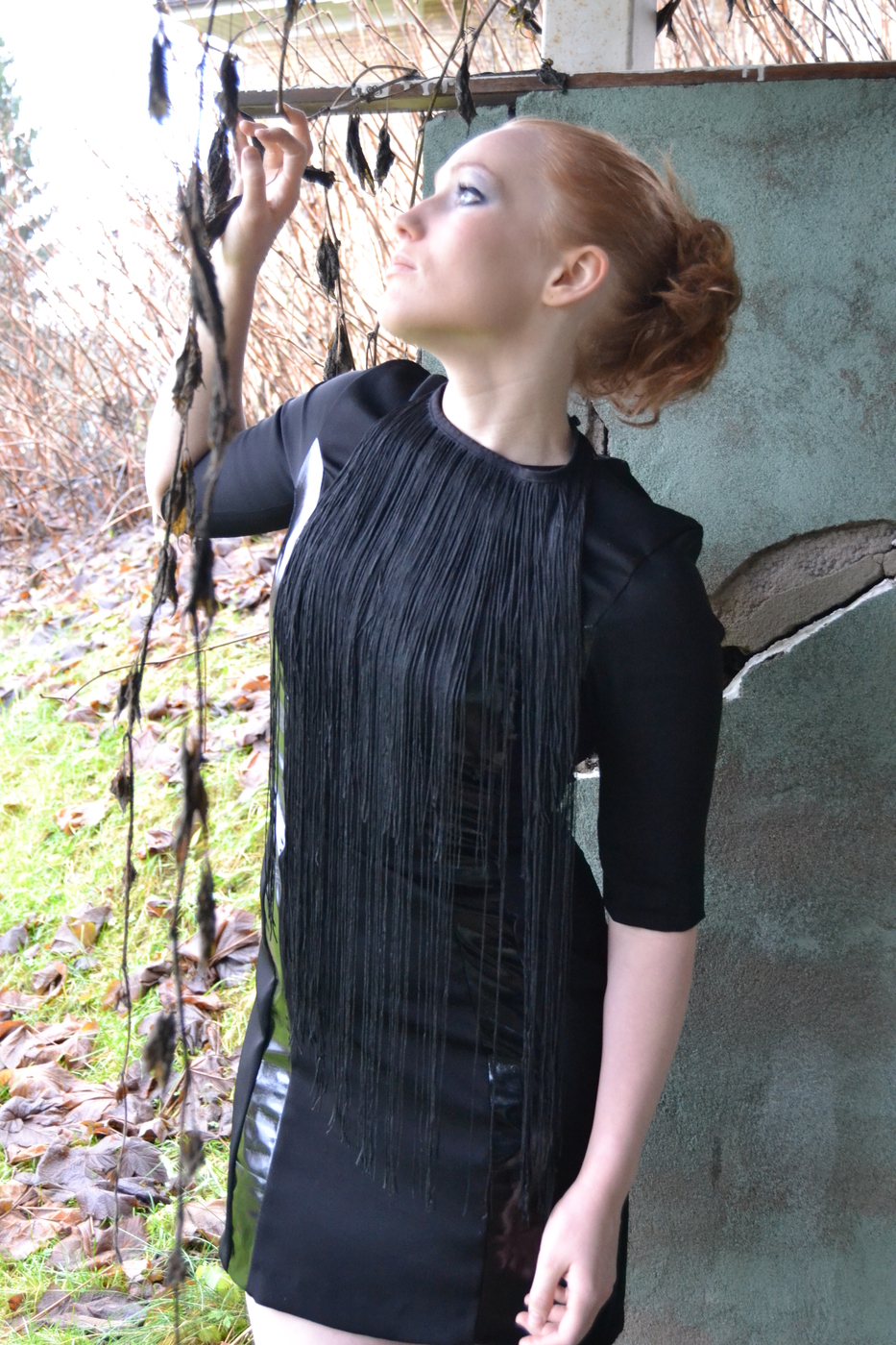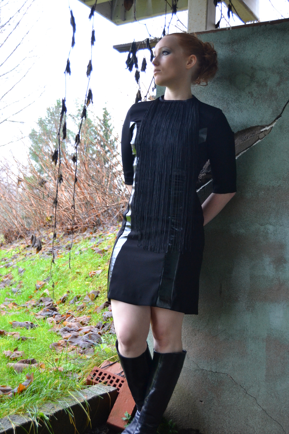 Tämä on veljeni tekemä mekko. Hän on tehnyt sen minulle vuonna 2013. Se ei mahdu minulle ja tuskin koskaan enää mahtuukaan. Veljeni on suunnitellut sun minun vartalooni sopivaksi ja tehnyt sen mittatilaustyönä. Nahkaiset leikkaukset on mietitty minun leveyden hartioiden mukaan. asuun on tehty myös vanhoista verhoista hapsukaulakoru, joka tuo siihen lisää näyttävyyttä. Käytin sitä 21v. syntymäpäivilläni ja monta kertaa sen jälkeen. Jemmaan mekkoa kaapissa, koska siihen liittyy niin paljon tunnetta. Onhan se veljeni tehkemä!