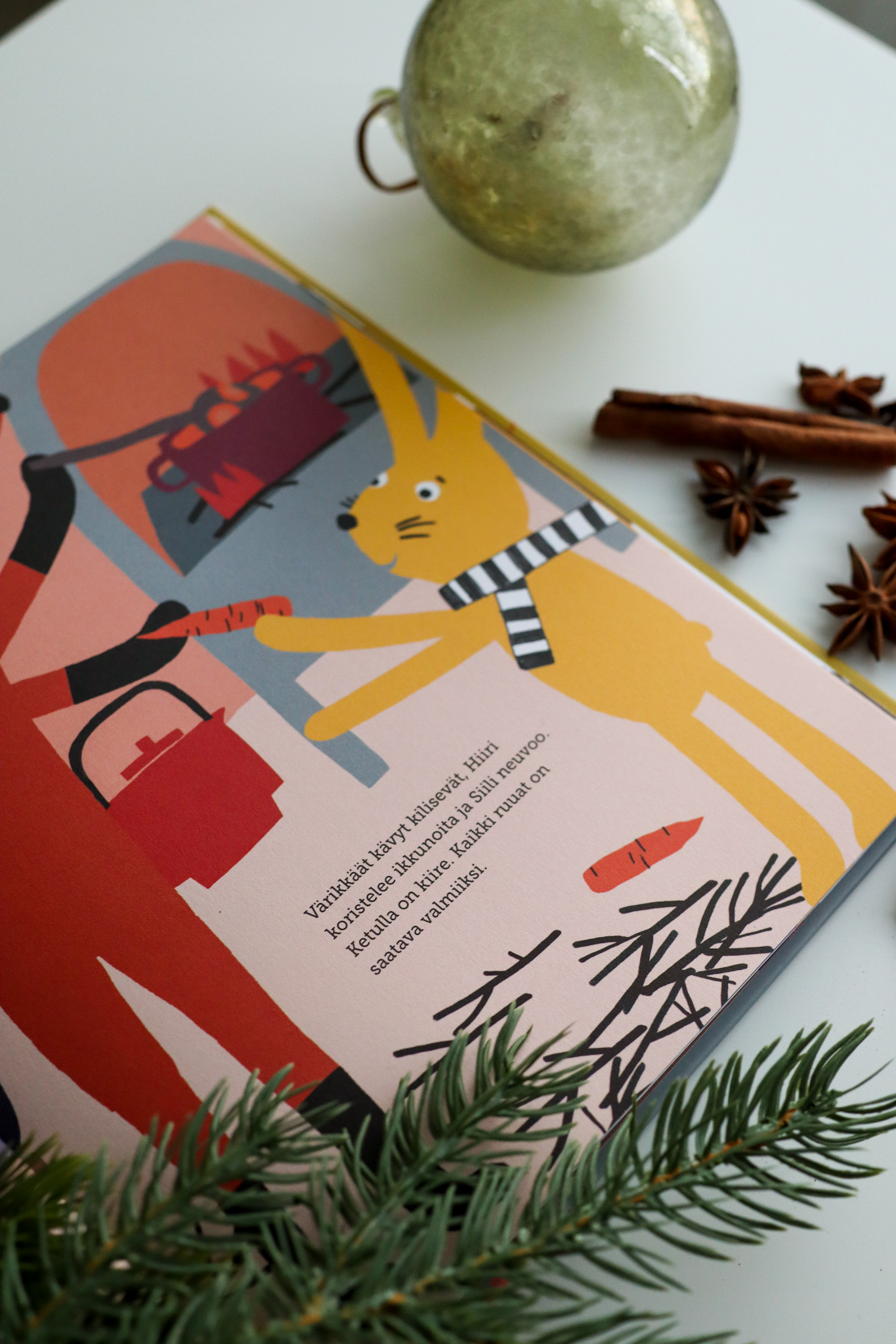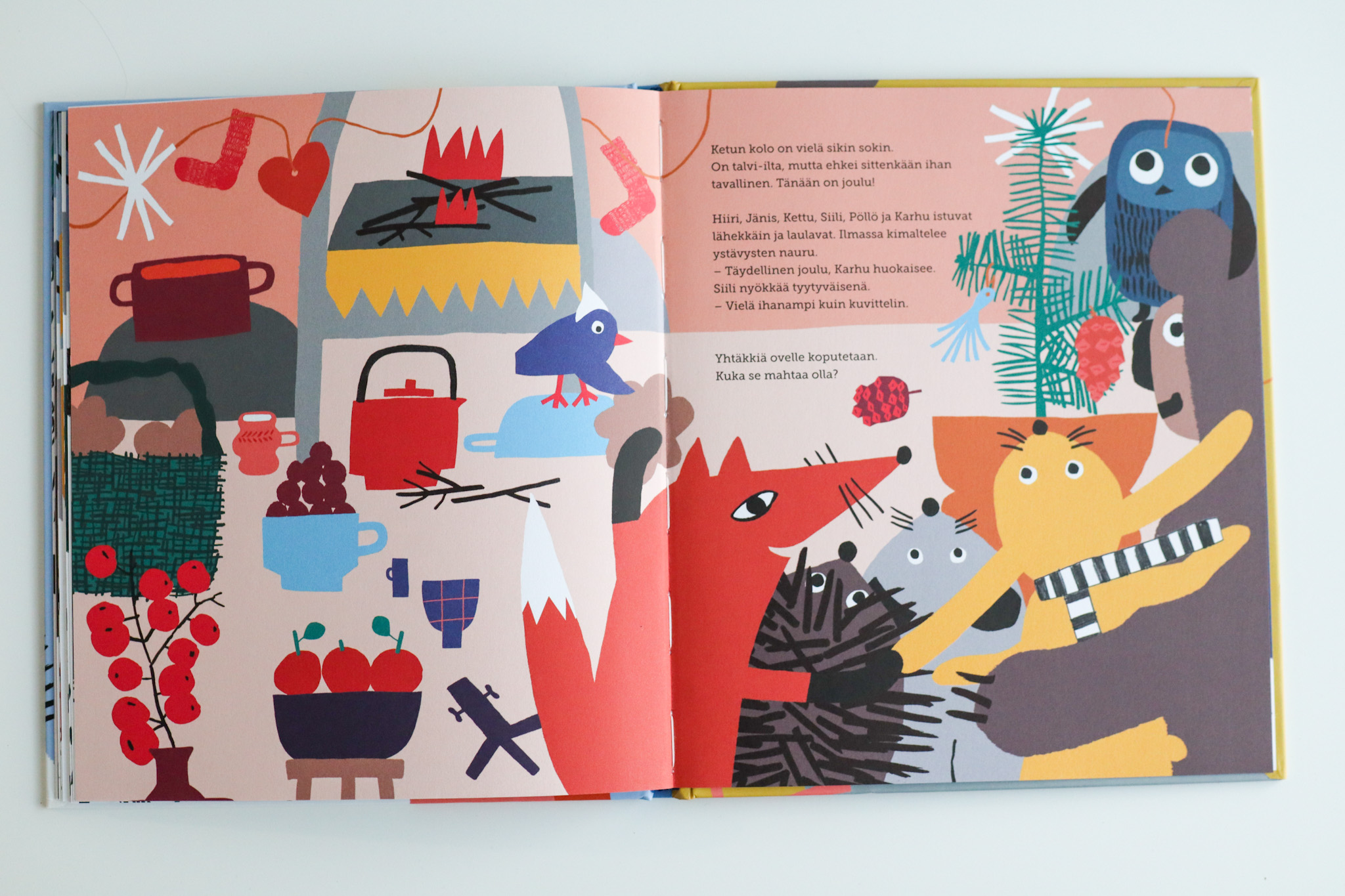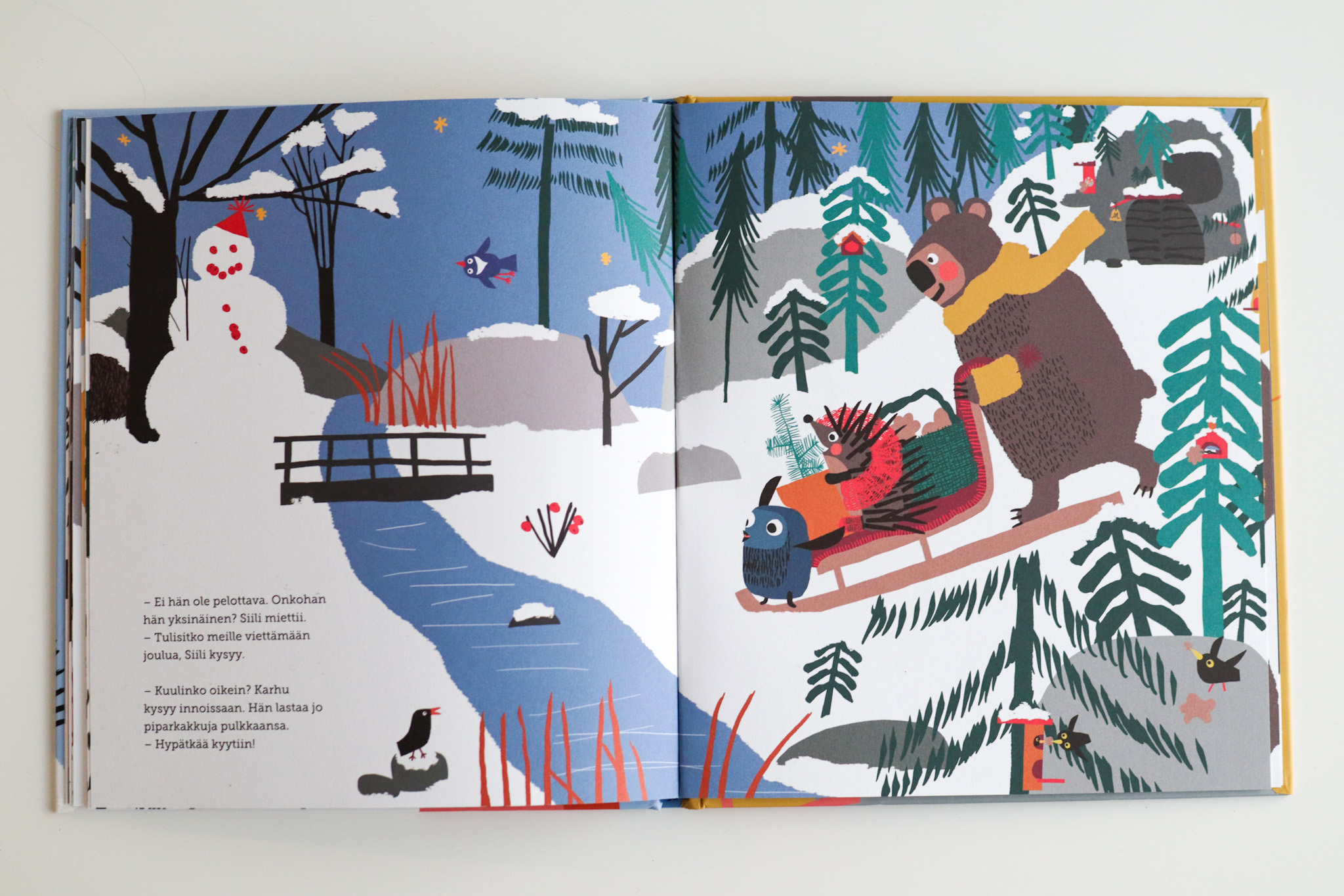 Kirjassa saakin jännittää miten eläimet selviytyvät kuusenhausta ja millainen Karhu mahtaa olla! Onko Karhu niin pelottava niin kuin eläimet ajattelevat vai onko se ehkä yksinäinen? Kirja päättyy juuri niin kuin ihanan joulusadun kuuluukin! Eläimet toteavat, että joulusta tuli vielä ihanampi kuin he kuvittelivatkaan! Täydellinen joulu voi syntyä, vaikkei kaikki menisi suunnitellusti. Ja tämä on ehdottomasti hyvä muistutus meille kaikille aina joulun kynnyksellä. Lapselle joulu voi olla täydellinen, vaikka me aikuiset voivottelisimme kuusen puuttumista, kiirettä ja sotkua. Kirjassa tuodaan hyvin esiin se, mikä onkaan tärkeää, eli yhdessä oleminen. Kaikki muu järjestyy sitten jotenkin!