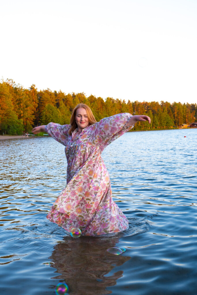 Upeita kuvia! ❤️ Mekkovalinta on loistava tän tyyppisiin kuvauksiin, kun oikein pomppaa tuolta veden altakin. ? Saippuakuplat ovat myös ihana lisä. ^^