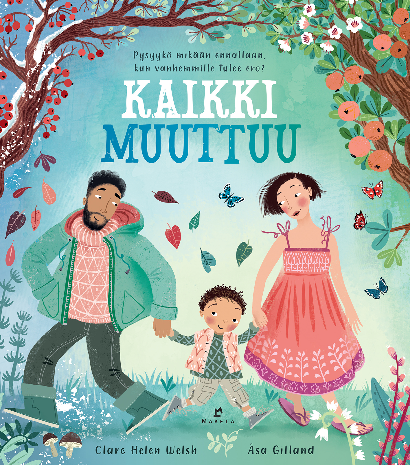 Kirja on tosiaan vasta elokuussa ilmestyvä. Silmäni osui siihen, kun selasin Mäkelän esitettä tulevista kirjoista. Tulevasta erosta kertovia kirjoja ei ihan hirveästi ole. Muutamissa kirjoissa esiintyy uusperhe, mutta sitä edeltänyttä aikaa ei käsitellä. Kirjassa lapsen vanhemmat kertovat hänelle erosta, siitä etteivät he enää aio olla yhdessä. Lempeä ja myötätuntoinen tarina auttaa lasta käsittelemään eron herättämiä kysymyksiä ja tunteita. Kirja vaikuttaa kiinnostavalta ja tuo esiin eroperheitä.