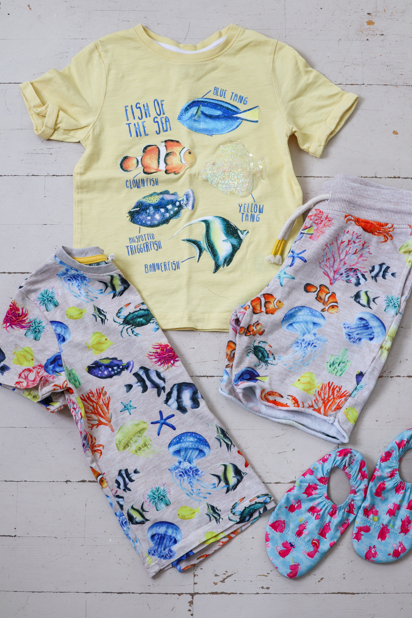 Kala-aiheiset t-paidat ja shortsit yht. 5 € Murula