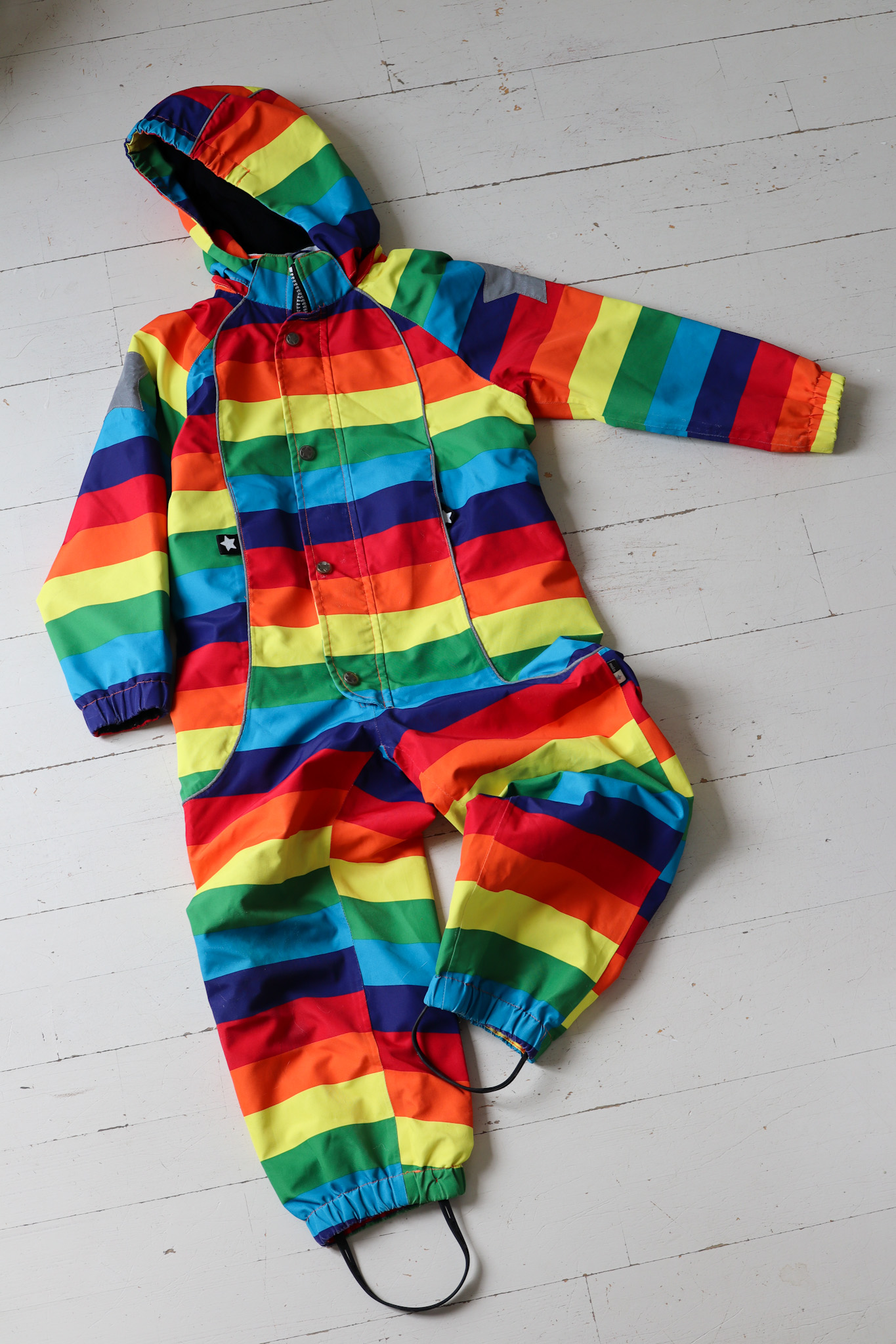 Lapsellani on alkanut myös mahdoton Spider-man fanitus ja voi mikä molemmin puolinen riemu meillä on ollut, kun olemme löytäneet kyseisiä teemavaatteita kirppikseltä. Löysin myös Molon välikausihaalarin syksyyn tai ensi kevääseen. Se on vielä reilu, mutten malttanut olla ostamatta. Lapsellani on ollut aivan sama haalari pienempänä ja vasta katseli puhelimestani kuvaa, jossa hänellä oli haalari päällä. Hän huokaili ihastuksesta ja sanoi sen jälkeen, että tuommoisen sateenkaarihaalarin hän haluaisi. Sellainen sitten löytyi kuin tilauksesta!
