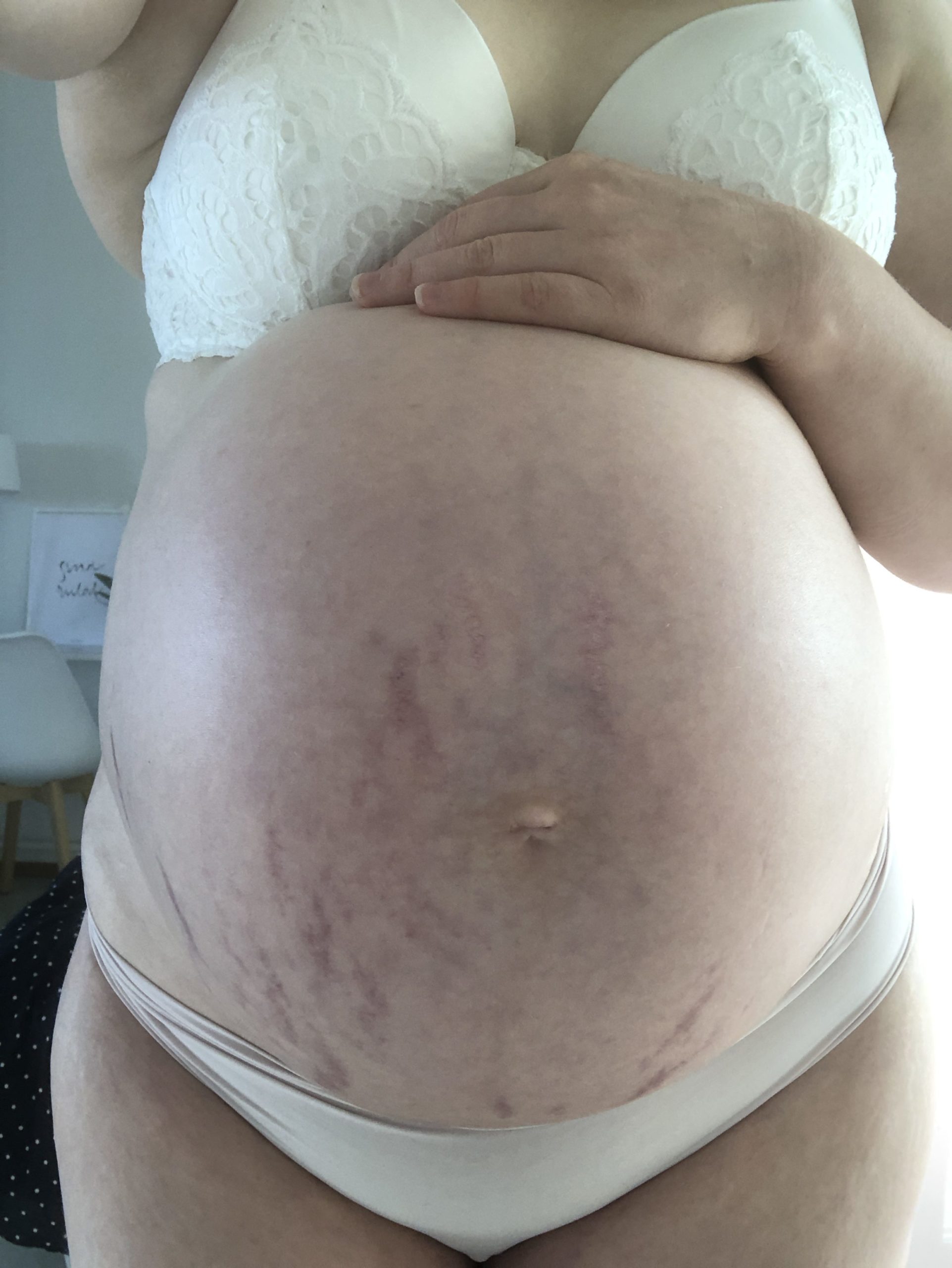 Loppua kohden olo oli tukala, juuri mitkään vaatteet tai kengät eivät sopineet, sää oli kuuma, aurinko paistoi, hiki valui ja turvotus oli jäätävä. Oleilinkin pitkälti äitini luona, jossa nukuin viileässä kellarissa ja kävin päivittäin uimassa järvessä. Kesä alkoi kääntyä syksyyn ja koko raskaus alkoi ottaa päähän. Sitä oli niin mitta täysi sitä oloa ja niin valmis kohtaamaan vauvan. Laskettuaika, se vain meni. Eikä mitään. Jokainen päivä sen jälkeen tuntui vuodelta. Puhelin täyttyi ”joko, joku, tuntuuko, että kohta synnytät, onko supistuksia” viesteistä. Jotka alkoivat vain ärsyttää. Minä otin kaikki ns. kotikonstit käyttöön. Saunoin, ravasin portaissa, join vadelmanlehtiteetä ja ei mitään. Olin niin turhautunut, mutta myös huolissani vauvasta. Loppua kohden liikkeitä oli hyvin vähän.