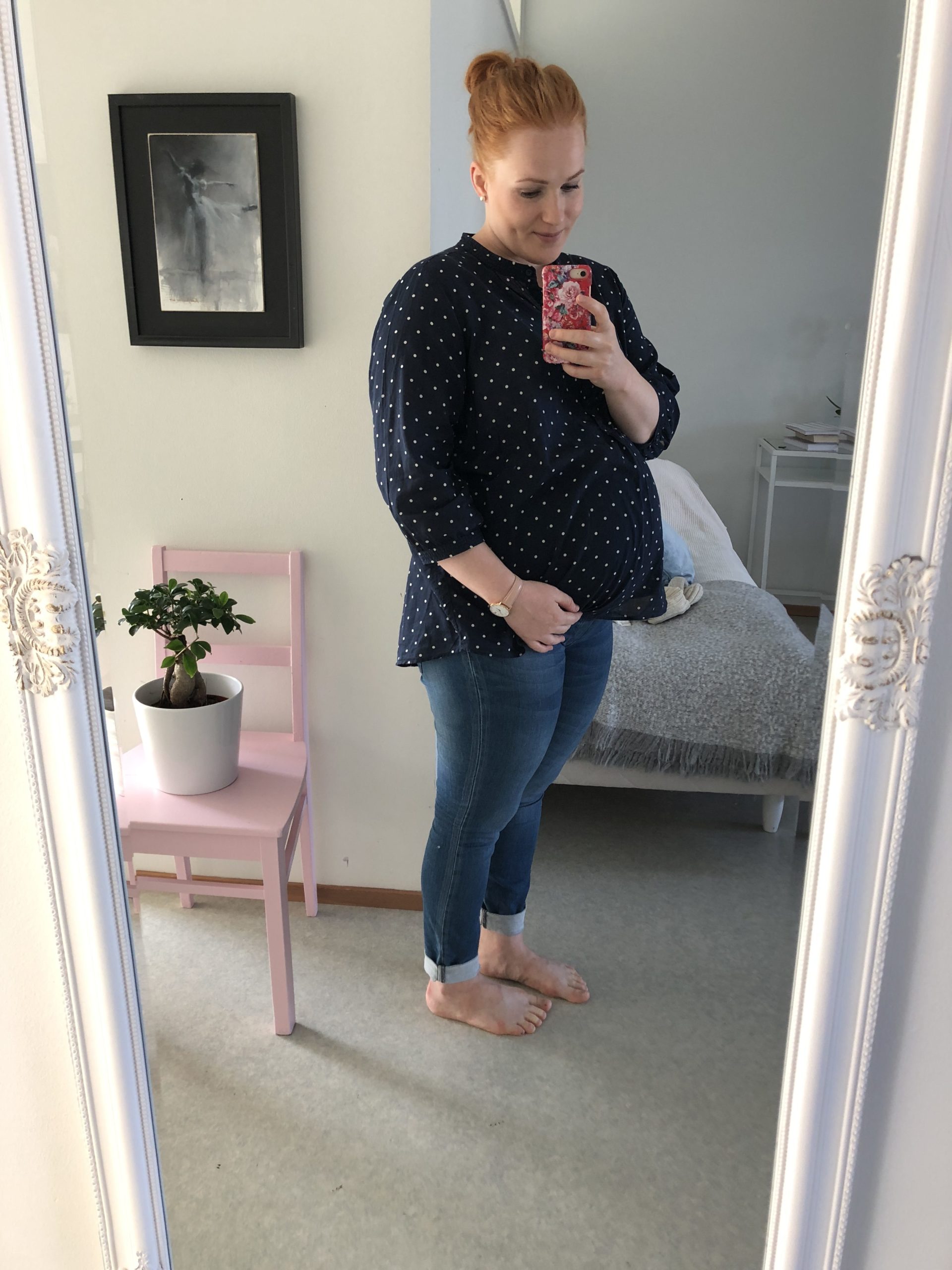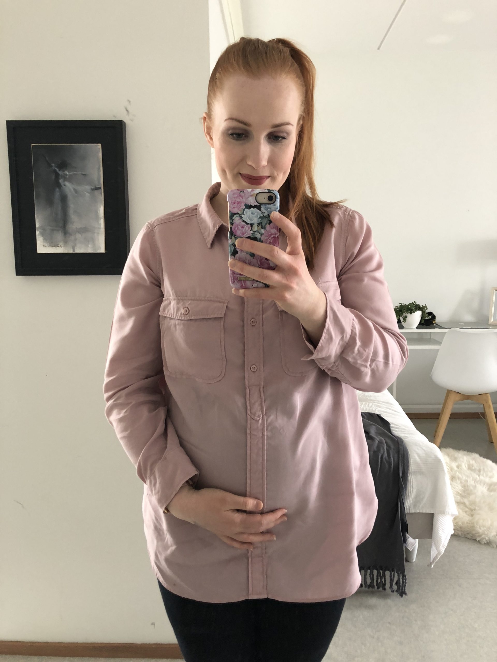 Pahoinvointi kesti viikolle 17 asti. Sen jälkeen aloin todella voida hyvin ja oikeasti nauttimaan raskaudesta. Suurimpia raskaushimojani oli kirpeät irtokarkit, kylmät nakit ja perunamuussi. Työpäivän jälkeen marssin aina S-marketin palvelutiskille ostamaan annoksen muussia. Mitä enemmän maha alkoi kasvaa, sitä paremmalta ja todellisemmalta se kaikki alkoi tuntua. Muutin isompaan asuntoon ja tein valmisteluja vauvaa varten. Jäin kesälomalle juhannuksena ja laskettuaikani oli syyskuussa. Siinä oli kolme kuukautta aikaa nauttia elämästä itsekseen ja näinkin ahkerasti kavereita.