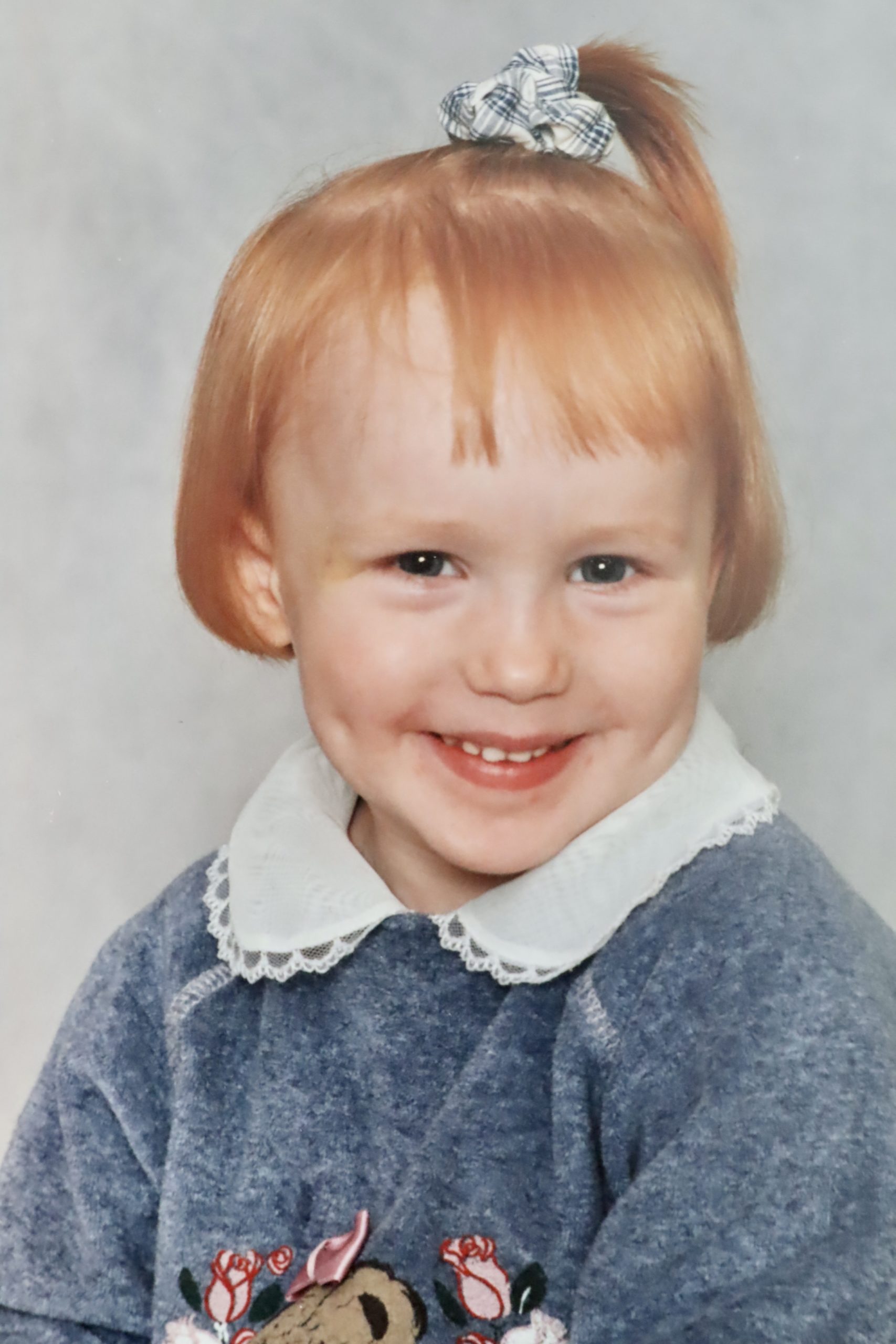 Muistan itkeneeni kotona tämän kuvan takia todella paljon. Itkin, koska näytin mielestäni tosi rumalle ja lihavalle. Niinpä pidimme kuvista vain tarrakuvat ja palautimme muun paketin. Kotona äiti laittoi hiukseni kivasti ja otimme filmikameralla kuvia minusta. Muistan, että niistä kuvista tuli paljon parempia ja niitä postitettiin sukulaisille ja kummeille. Olen aina ollut vähän pyöreämpi ja tuolloin on ollut selkeästi vaihe, jolloin pituutta ei ole tullut samassa suhteessa painon kanssa.