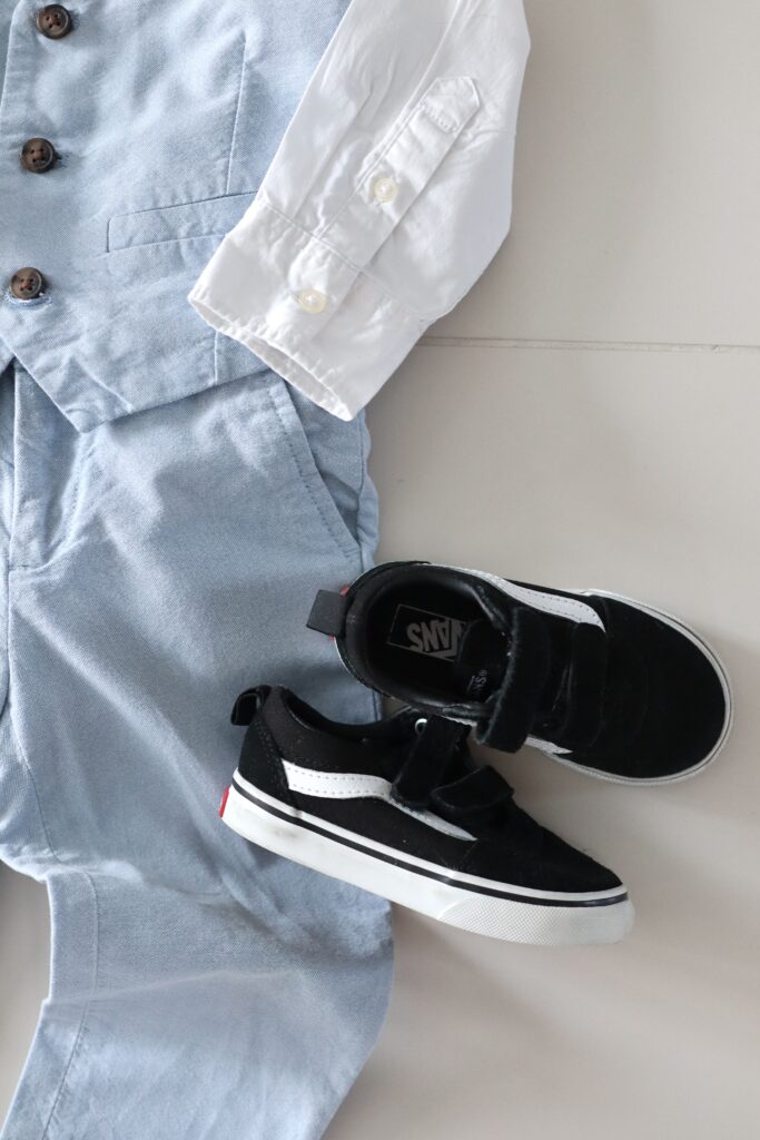 Kenkien sopivuus on vielä mysteeri. Kahdelta vanhemmaltakin lapselta puuttuu vielä kengät. Häitämme juhlitaan kuitenkin maalaismiljöössä pellon laidalla, joten mitään juhlakenkiä en erikseen osta. Lapsilla saa mielestäni olla siistit lenkkarit tai tennarit. Ne voi olla kesällä muutenkin käytössä ja putsataan vain ennen juhlia. Sellaiset varmasti löytyy lähempänä. Ihanaa tietysti olisi, jos kaikille löytyisi sopivat Vansin tennarit, muttei välttämättömyys.