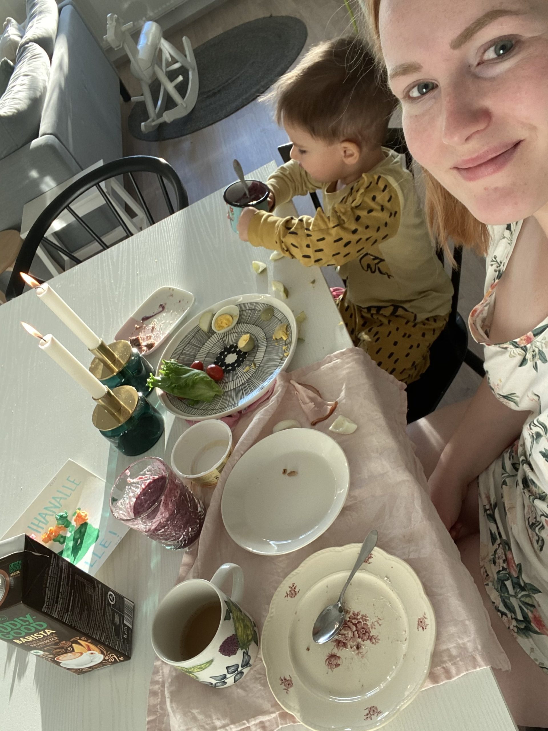 Sunnuntai oli rauhallinen ja levollinen. Tykkään olla menossa, mutta nautin myös kotoilusta ilman sen kummempia. Aamulla söimme myöhäisen aamupalan ja suuntasimme leikkipuistoon. Eemi oli reissusta niin uupunut, että nukahti syliini jo ennen kuin olimme ehtineet syödä lounasta. Niinpä lounas meni melko myöhäiseksi ja söimme vasta päiväunien jälkeen.