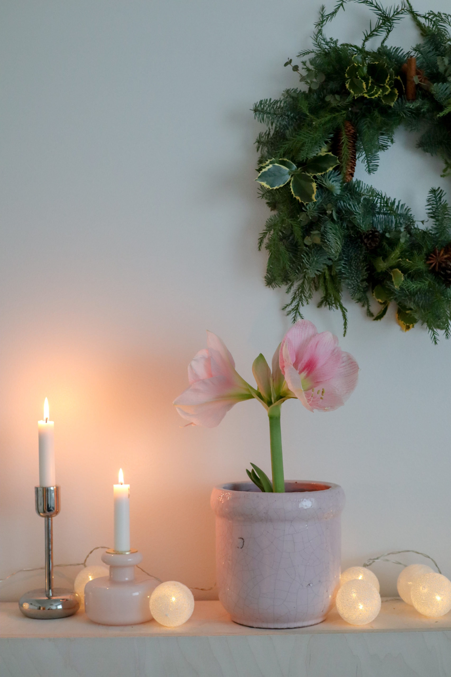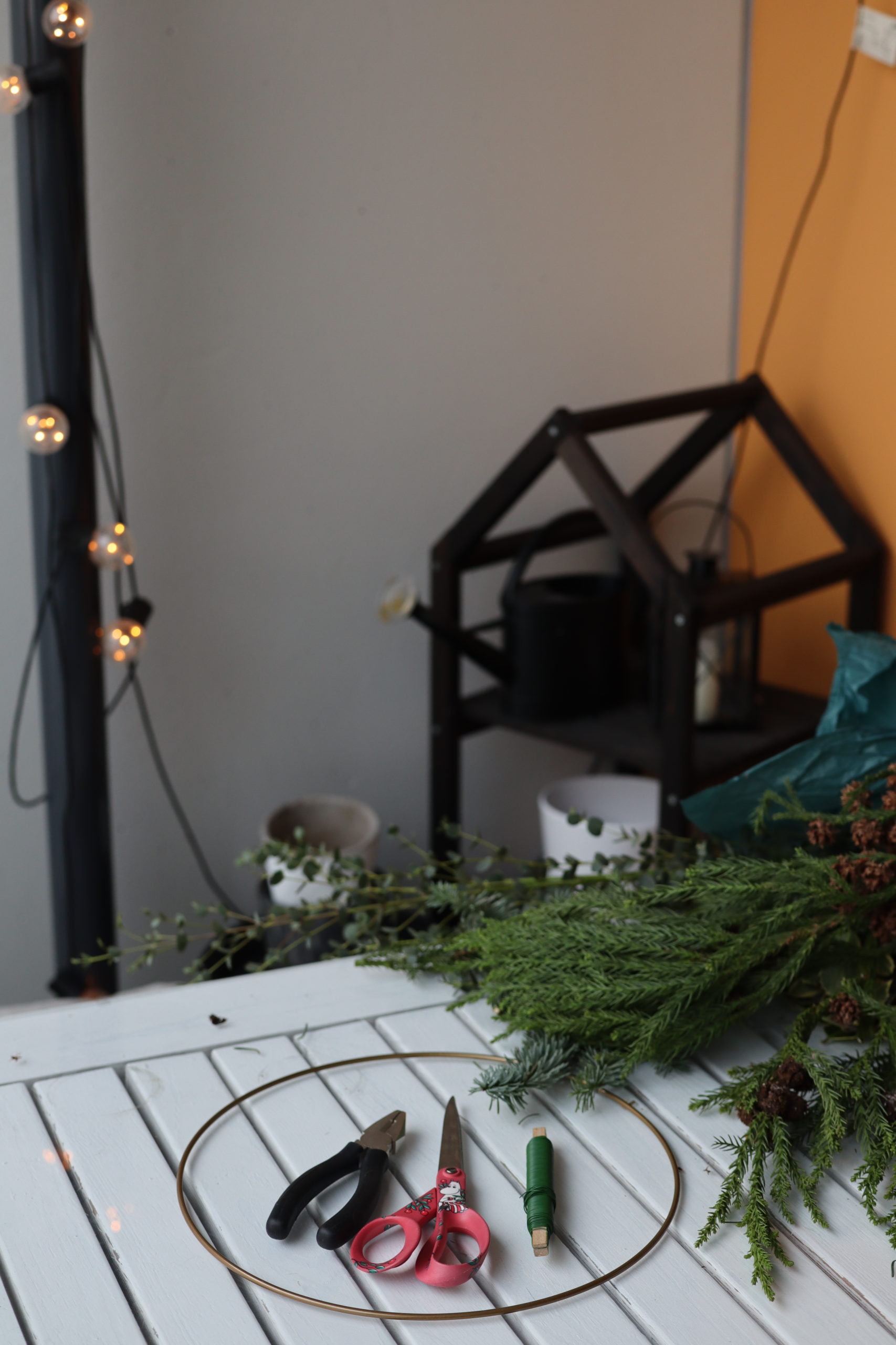 Ystäväni toi minulle aivan ihanan lahjan mukanaan! Sain häneltä kranssin tekemiseen tarvittavat välineet. Hän itse oli ollut kurssilla ja todennut, että tämä olisi ihan Iidan juttu ja päätyi ostamaan tarvikkeet minulle. Niinpä maanantai-illalla tein elämäni ensimmäisen kranssin ja siitä tuli tosi ihana.