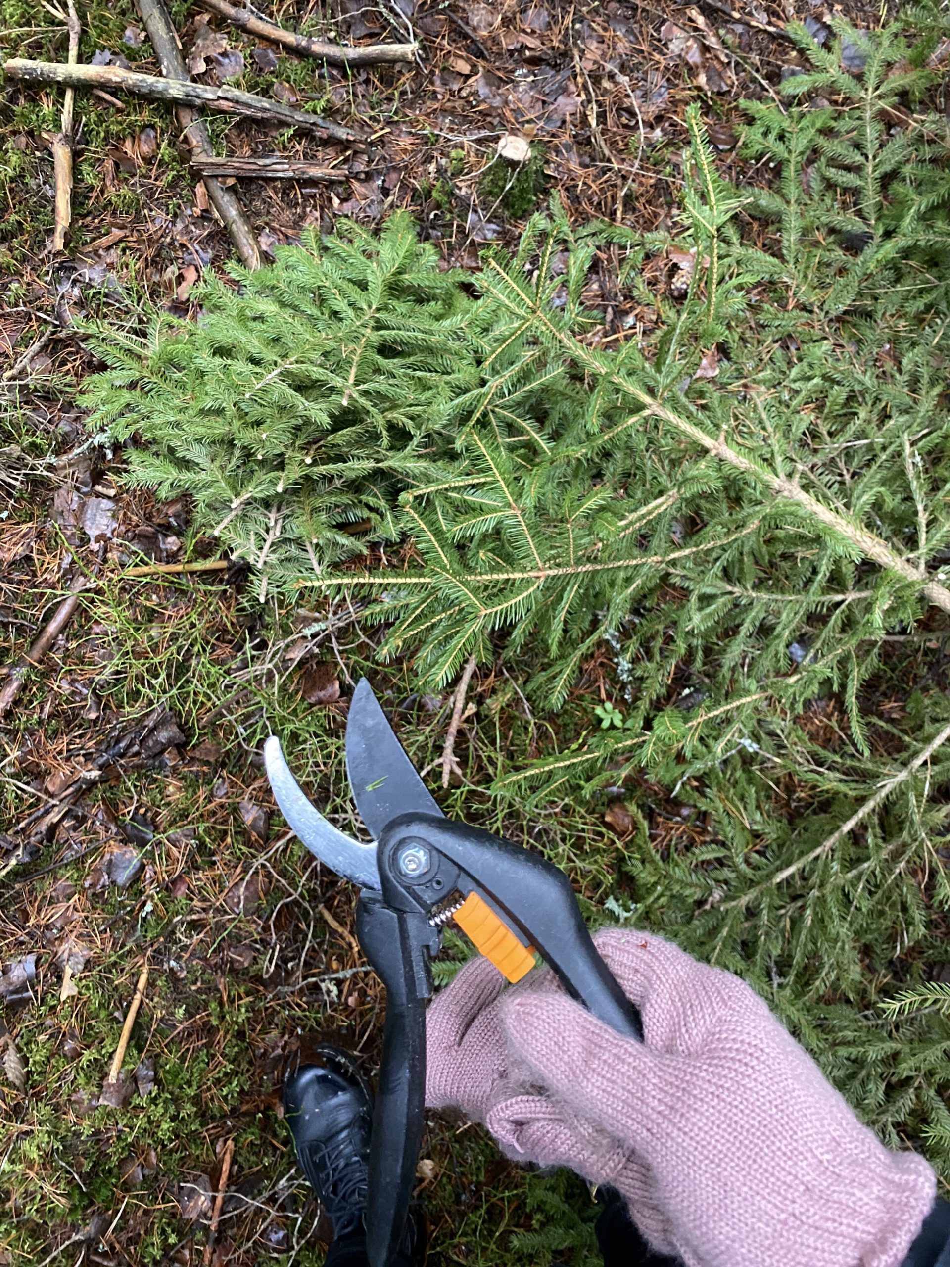 Innostuin kransseista todenteolla ja niinpä lähdin sukulaiseni tontille, jossa on metsää, hakemaan havuja. Mukaan tarttui oksia, varpuja, sammalta ja käpyjä. Auton takakontti oli täyteen lastattu metsän antimia ja kyllä nauratti. Koin kranssien tekemisen niin rentouttavana ja erilaisena tekemisenä, siinä pääsin uppoutumaan ihan muuhun ja unohtamaan kaiken. Samalla reissulla hain vielä Eurokankaasta kasan kankaita, jotka olivat -20% alennuksessa. Keksin alkaa ompelemaankin tässä kaiken keskellä, kuin tekemisestä olisi puutetta! Mutta ajattelin itse ommella vohvelikankaasta käsipyyhkeitä päiväkodin henkilökunnalle lahjaksi käsisaippuan kera.