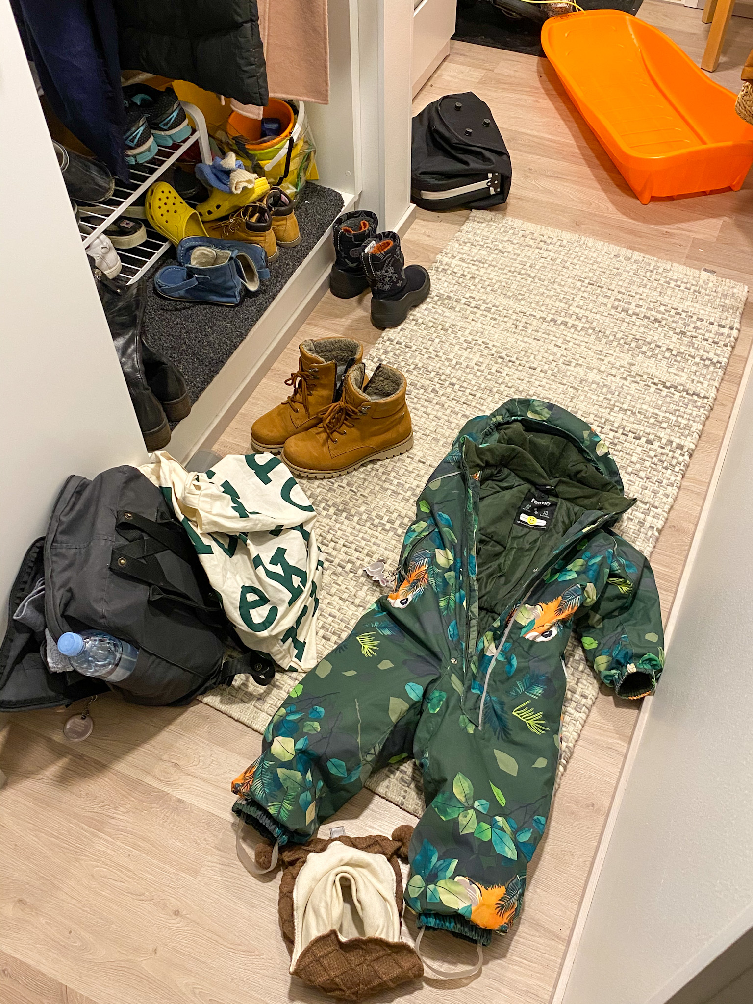 Eemi toivoi saavansa nukkua päiväunet olohuoneen lattialla olevalla patjalla ja myönnyin ehdotukseen. Eemi nukkui noin klo 13.20-14.15 päiväunet. Itse sillä aikaa siivosin kettiön, laitoin pyykit ja istuin hetken sohvalla odottaen, että Eemi herää.