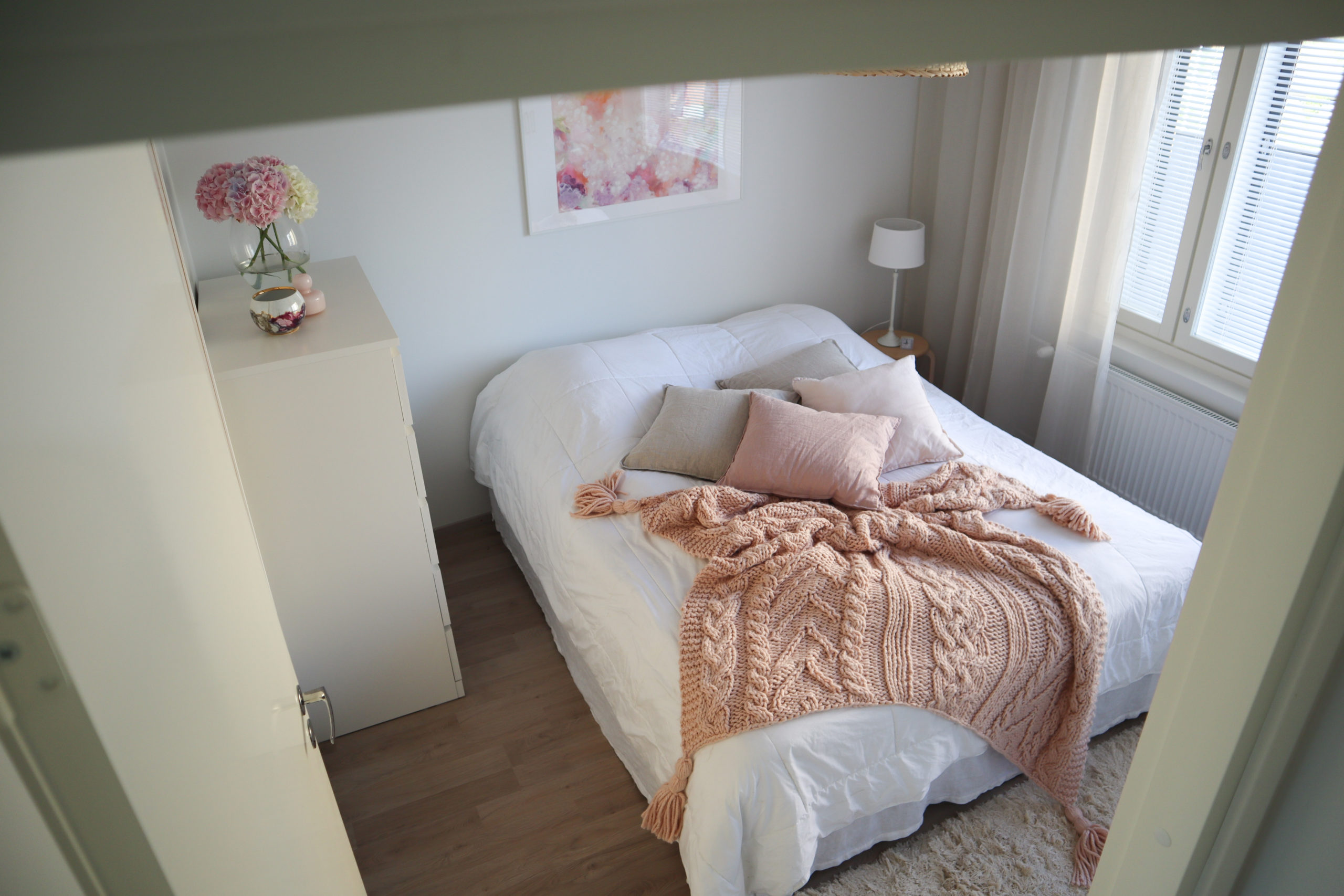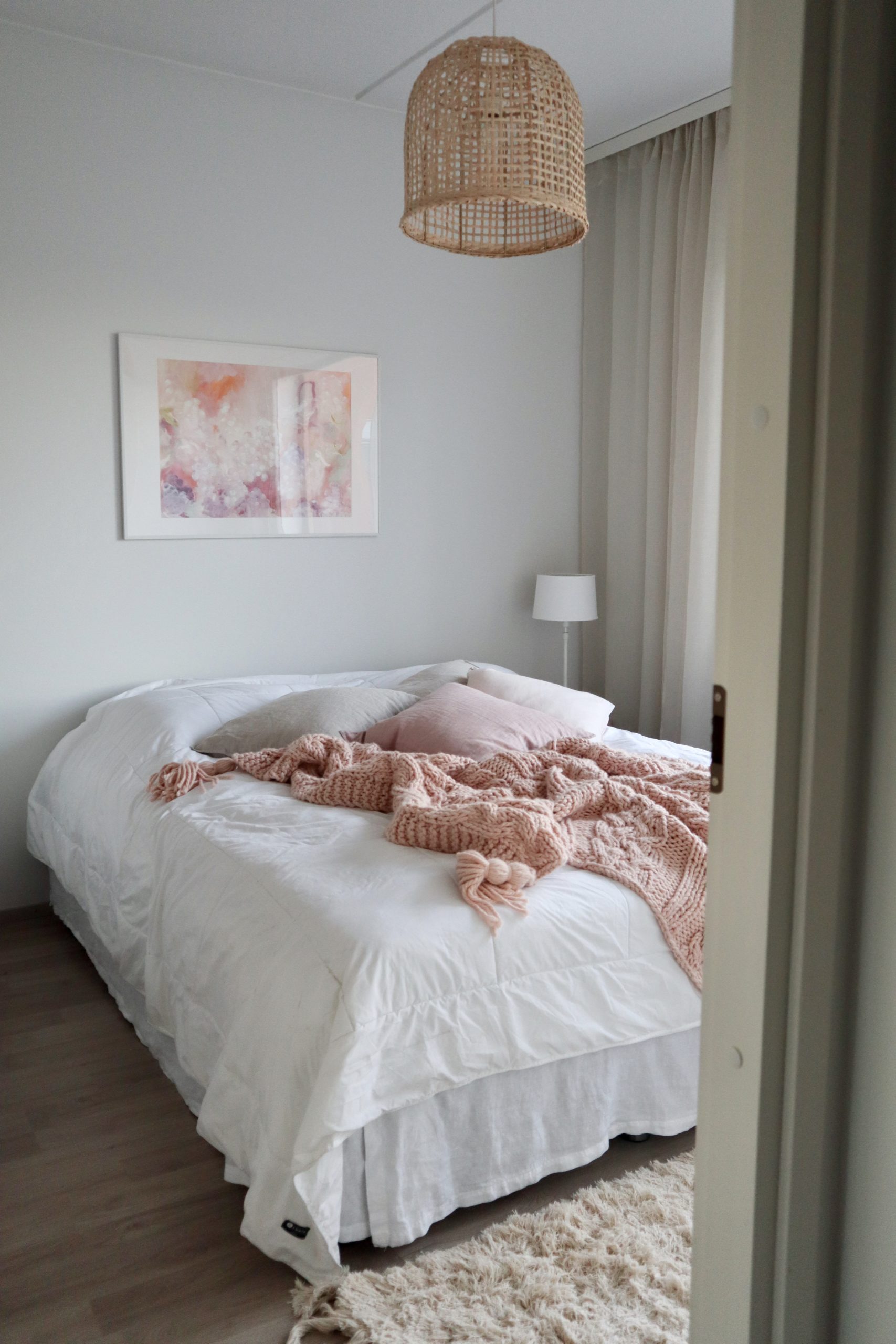 Tosi nätti makuuhuone! Itse laittaisin vielä sängynpäädyn, en tajunnut ennen kuinka paljon se muuttaa koko makkarin ilmettä, mutta nykyään en voisi olla ilman, täydentää mielestäni kokonaisuuden ?