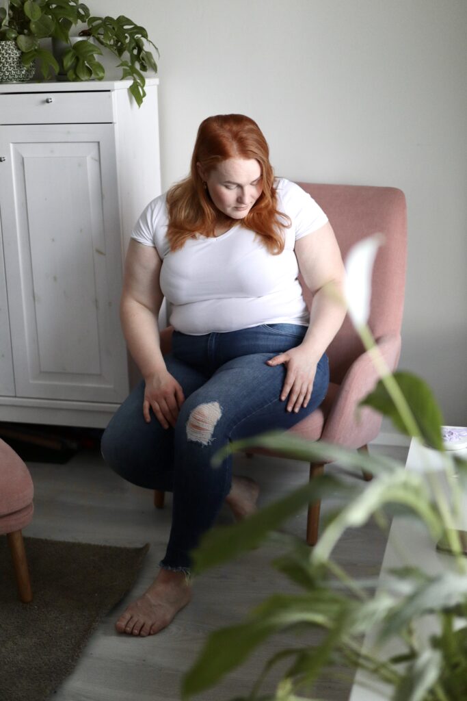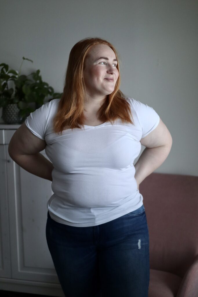 Painokin alkoi nousta. Oli koko ajan vähän vetämätön olo ja väsytti. Turvotti ja useampi vaate tuntui kiristävältä. Oma olo oli oikeastaan aika huono ja se heijastui myös parisuhteeseen. Oli todella vaikea ottaa vastaa miehen kosketuksia, koska itsellä oli niin epämukava olo omassa vartalossa. Kyseiset tunteet on niin ikäviä. Ja oman pään sisällä. Vaikka toinen sanoisi mitä, se harvoin auttaa.