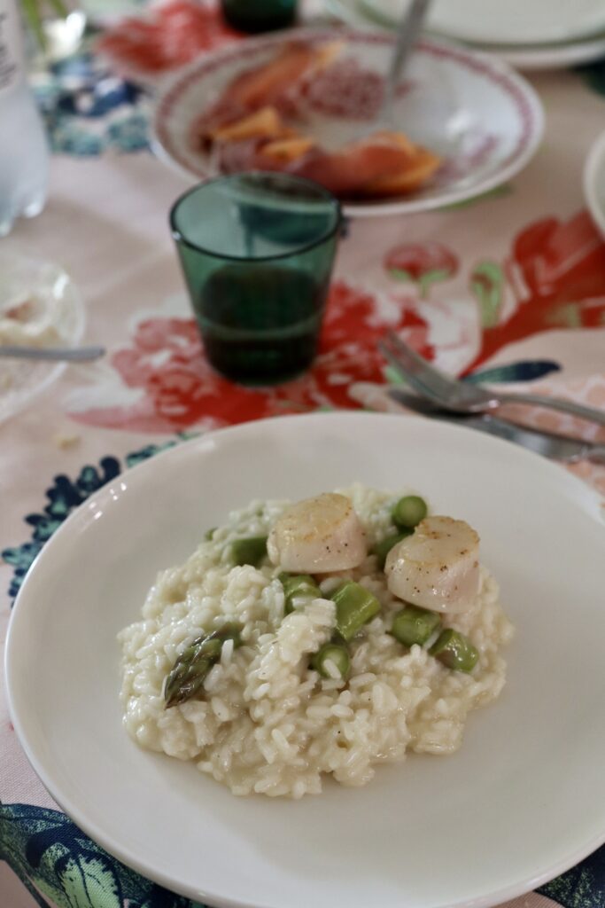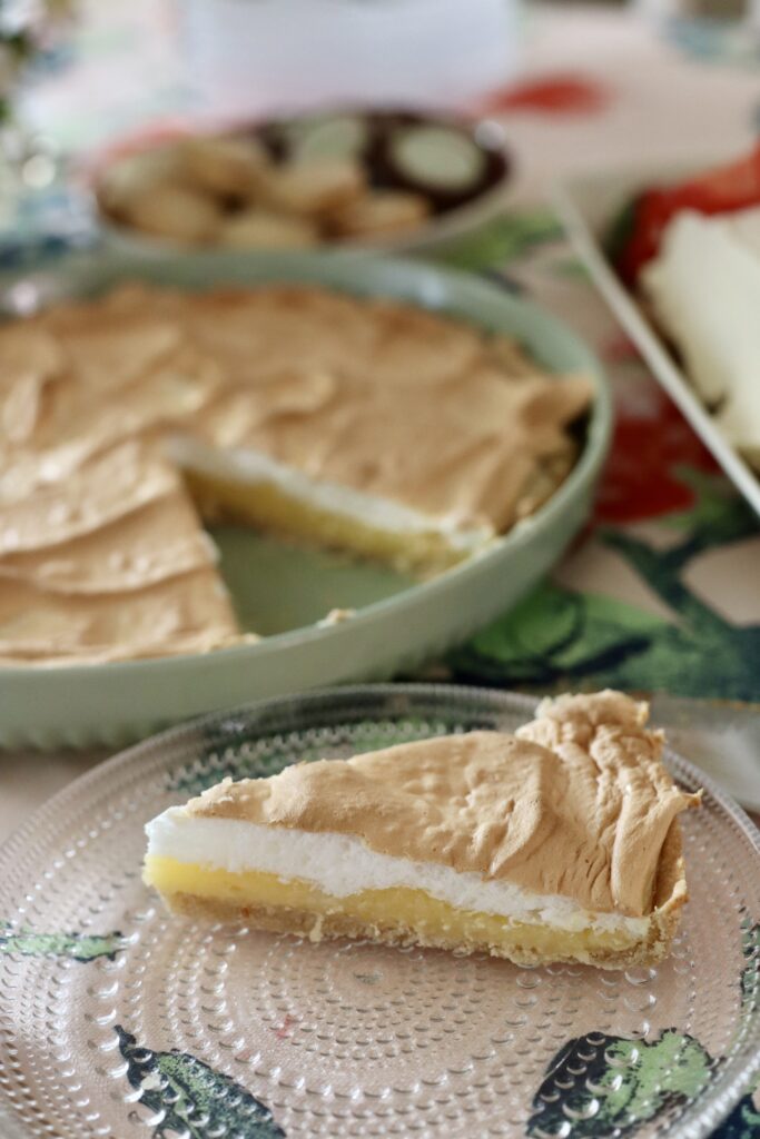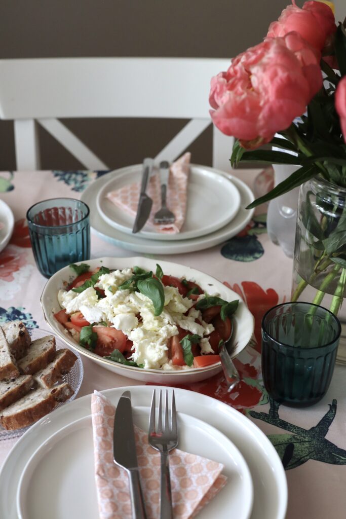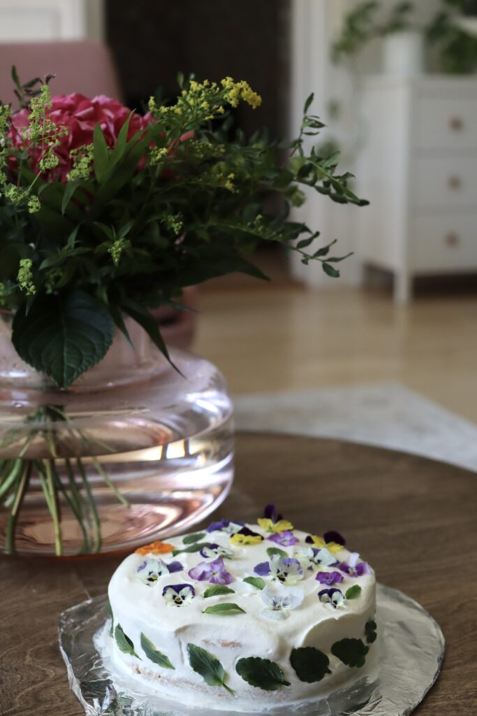 Kutsuimme meidän molempien äidit meille syömään äitienpäivän kunniaksi. Olin ehdottanut miehelle, josko hän kokkaisi meille kaikille äideille. Harvemmin äidit pääsevät valmiiseen pöytään! Tein meille italialaistyylisiä alkupaloja tomaattia, mozzarellaa, melonia ja leipää, jonka jälkeen mies kokkasi parsarisottoa kampasimpukoilla. Jälkiruoaksi olin leiponut sitruuna-marenkipiirakan. Oli kiva kutsua isovanhemmat meille, meidän ei tarvinnut lähteä mihinkään tai käydä monessa paikassa kyläilemässä yhden päivän aikana. Omille mummoilleni leivoin täytekakut, jotka koristelin kermavaahdolla orvokeilla. Kävin viemässä ne heille jo lauantaina.