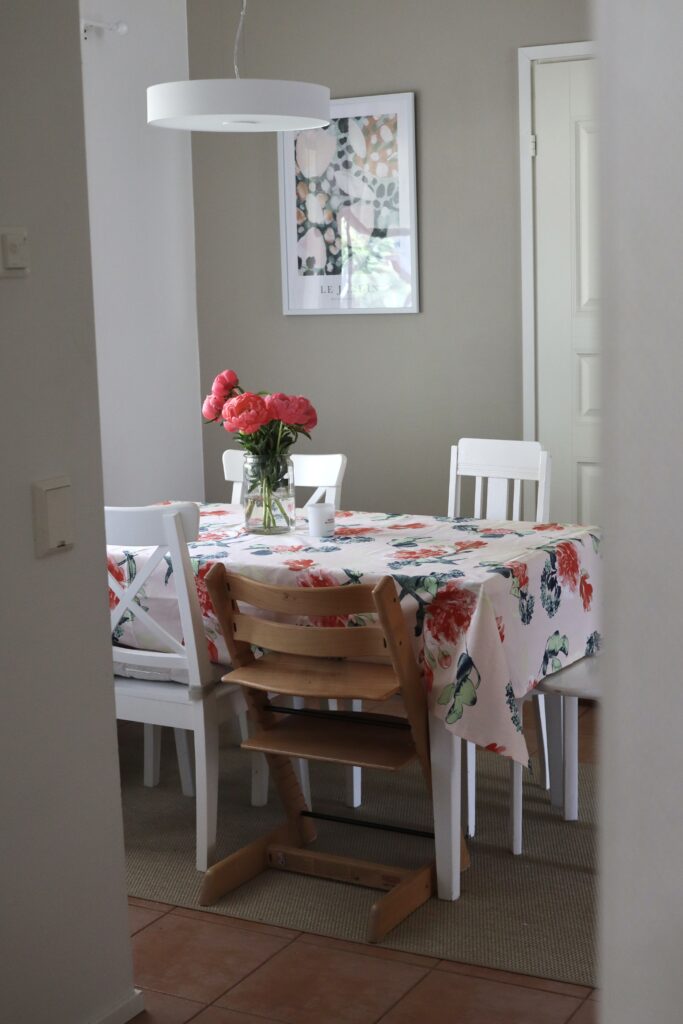 Aurinkoiset kevätpäivät saavat tosin kodin näyttämään vähän nuhjuiselta, pölyä on joka puolella ja ikkunat karsean likaiset. Ulkoa kantautuu lasten ja koiran mukana järkyttävä määrä hiekkaa ja rapaa. Mutta onneksi pihalla tarkenee jo vaikka mitä. Olen laittanut ulkosohvan paikoilleen ja laittanut pihapöytään pöytäliinan. Mies on rakentanut ylijäämälaudoista istutuslaatikoita ja touhunnut niiden parissa aivan innoissaan. Meistä saattaa kuulemma tulla ihan omavaraisia! Minä taas olen raivannut meidän kauan hoitamattomana ollutta pihaa. Olen katkonut oksia, haravoinut lehtiä ja kaivanut vanhoja kukkapenkkejä esiin sammaleen alta. Lapset kulkevat perässä ja matkalla pysähtyvät touhuilemaan omiaan. Kun sisälle palaa vasta illalla, koti näyttääkin aika siistiltä!