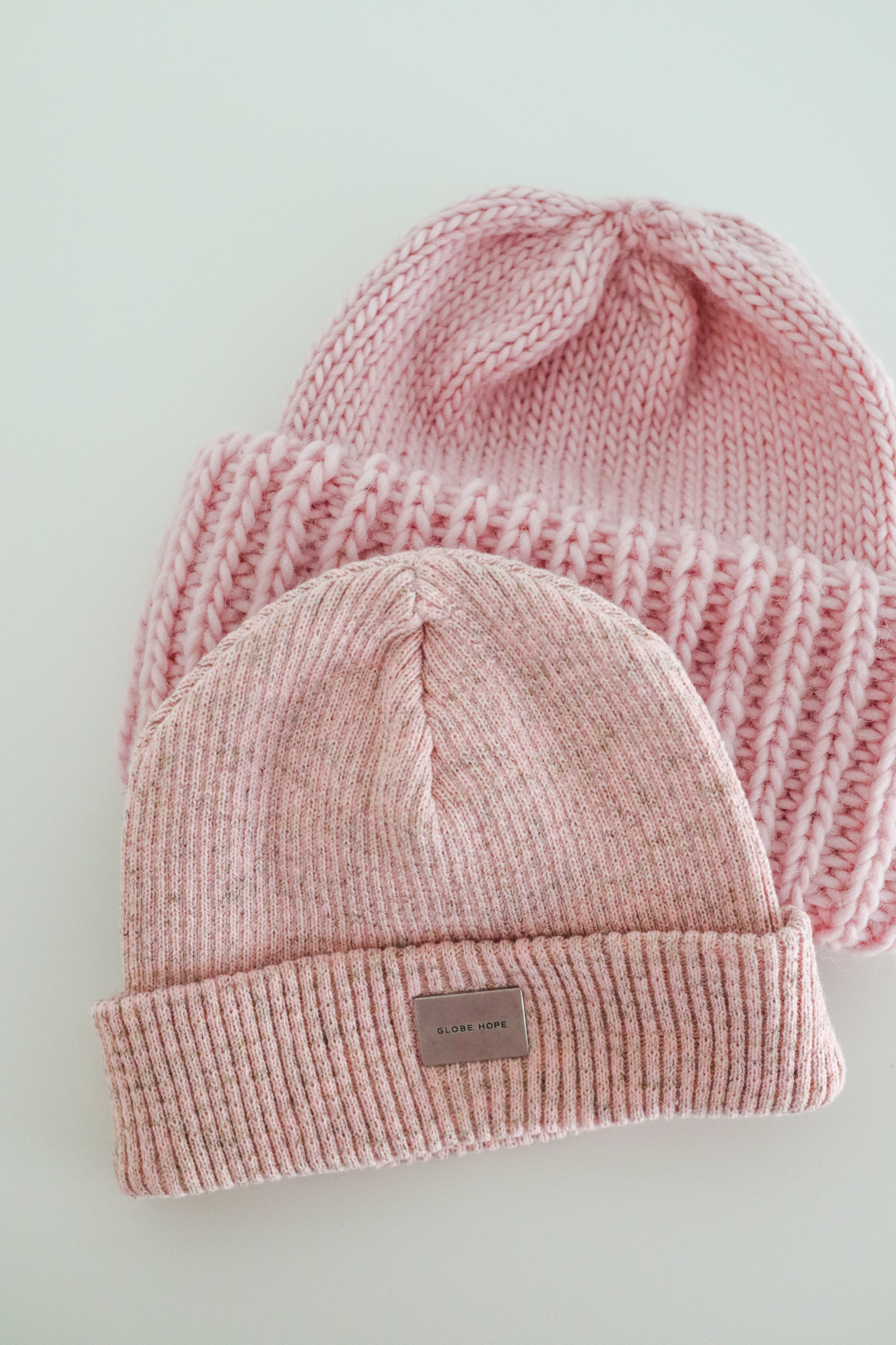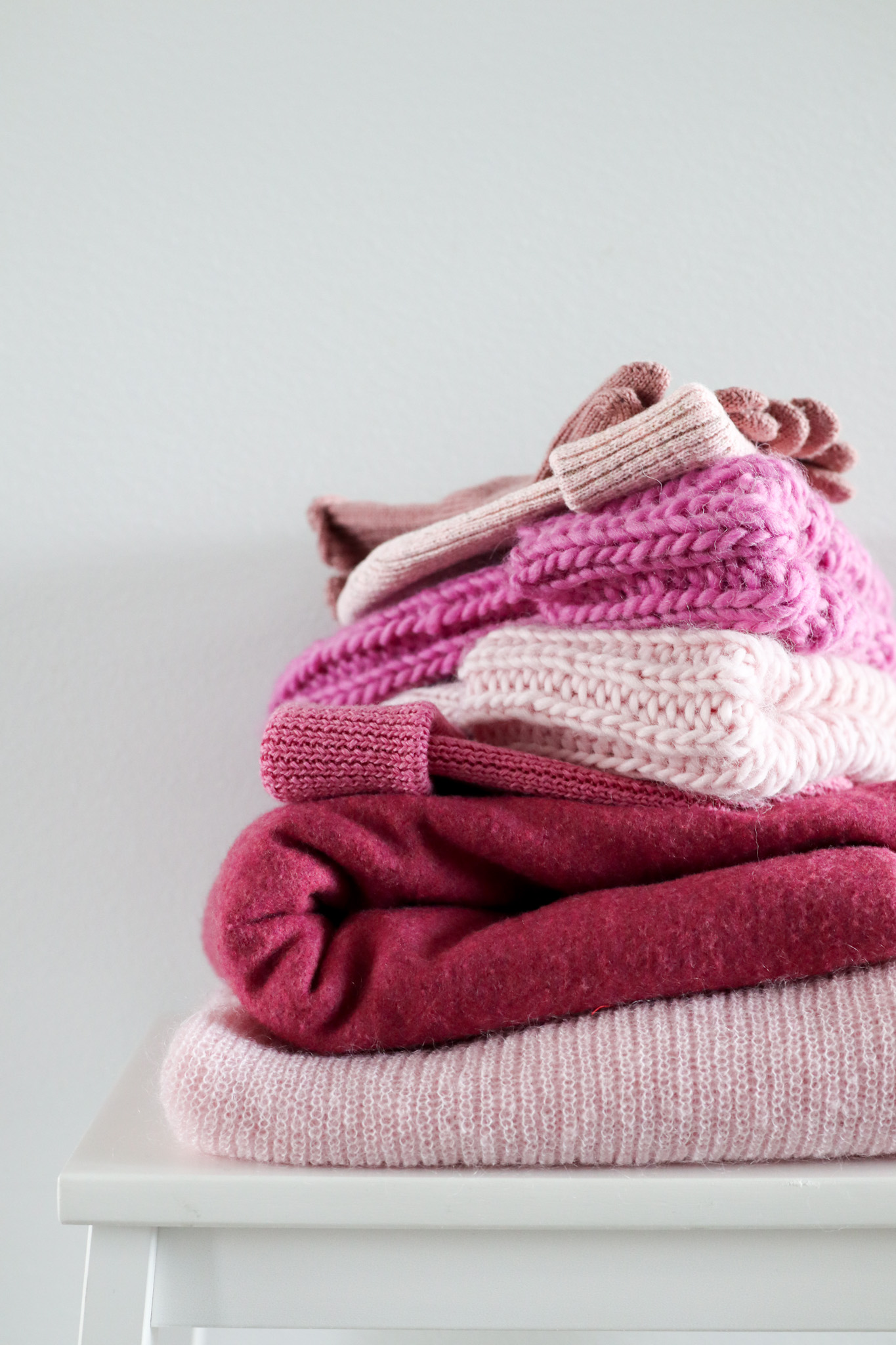 Onneksi hattaran vaaleanpunaista pipoa voi hyvin pitää aivan ihanan villapaidan kanssa. Ne ovat aivan täydelliset toisilleen ja sävy osu yhteen.