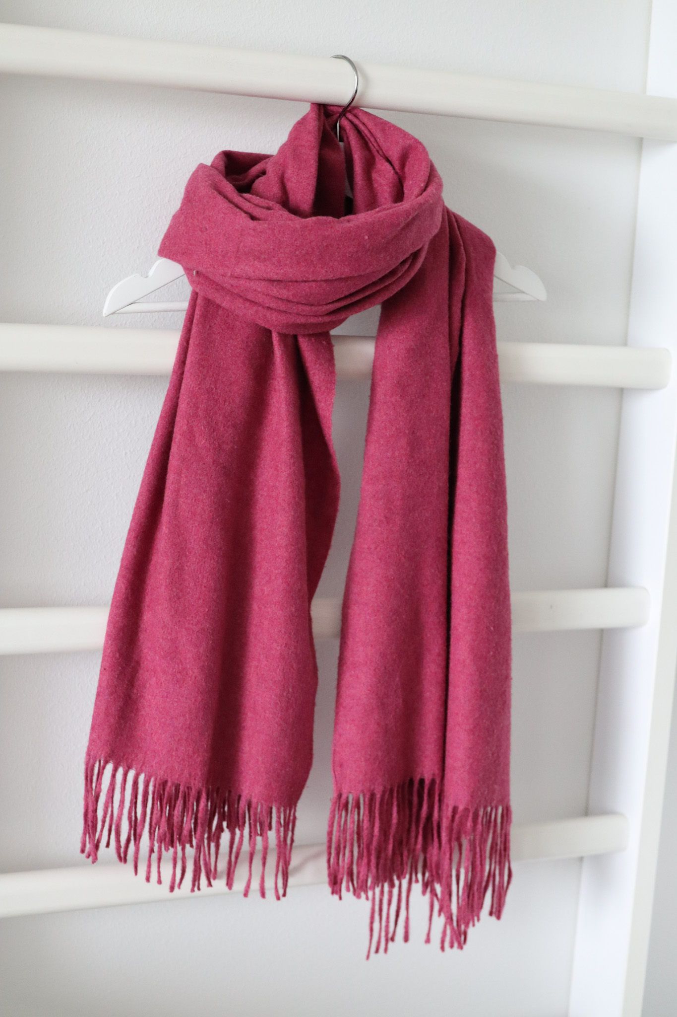 Löysin viikonloppuna kirppikseltä ihanan marjapuuronpunaisen huivin ja ilahduin valtavasti. Se on nimittäin sävyltään melko lähellä kahtakin pipoani ja sopii hyvin niiden kanssa käytettäväksi.  Viime syksynä ihastuin myssyihin. Ystäväni neuloi minulle yhden myssypipon ja toisen tilasin Iinekseltä, johon törmäsin Instagramissa. Vaaleanpunainen hattaramyssy on Iineksen käsialaa. Vielä kun löytäisin siihen sopivan muhkuhuivin!