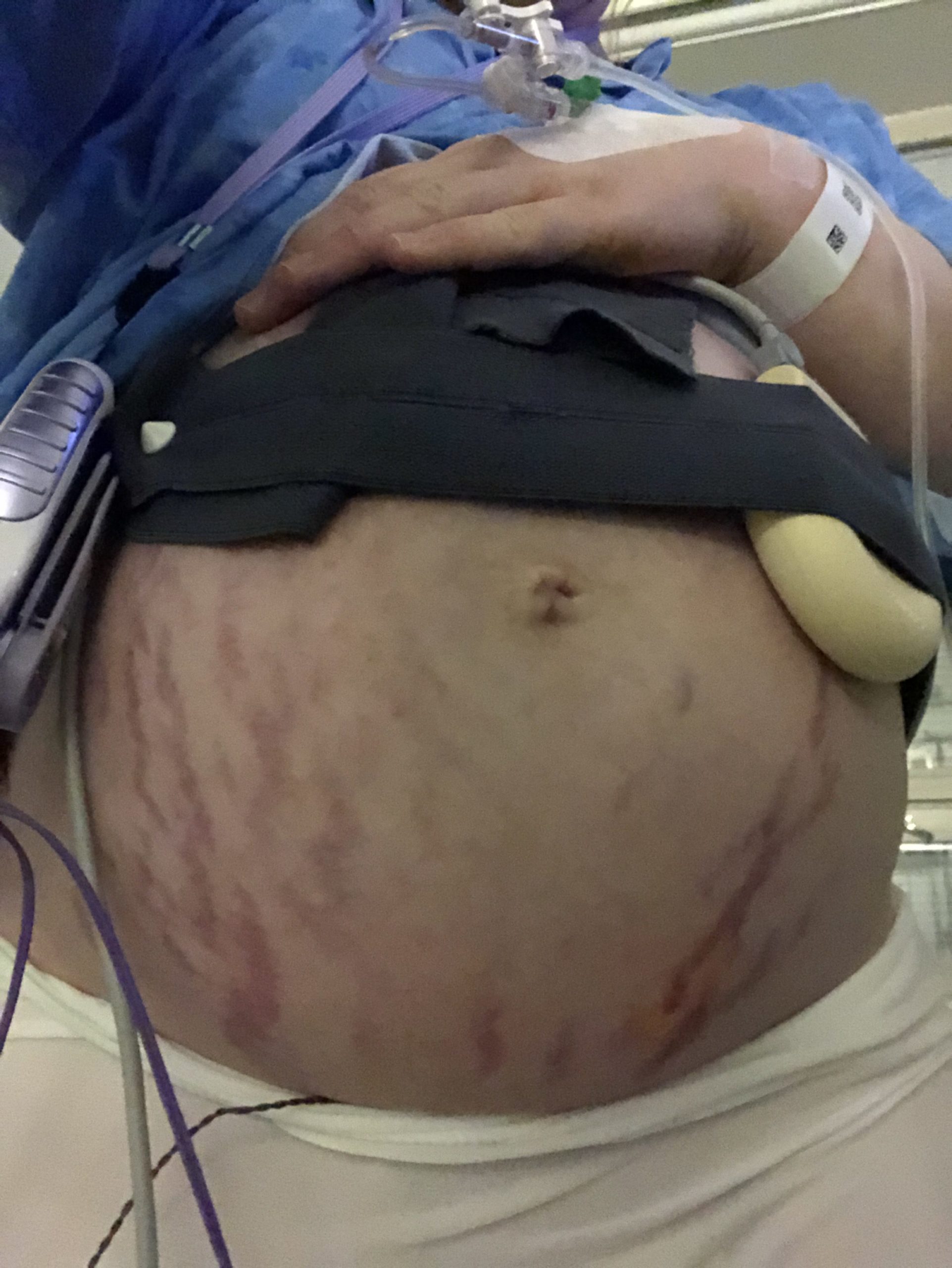 Aamulla minut otettiin sisään osastolle, jossa hoidetaan synnytysten käynnistyksiä. Pääsin neljän hengen huoneeseen ja sain sairaalavaatteet puettavaksi päälle. Noin klo 10.00 lääkäri tuli tekemään sisätutkimuksen ja sen yhteydessä puhkaisi lapsivesikalvon. Ballonki oli kypsyttänyt kohdunsuuta sen verran, että kalvojen puhkaisu oli mahdollista. Koin lääkärin toiminnan todella epämiellyttävänä. Hän ei puhunut minulle mitään tai kertonut mitä oli tekemässä. Hän vain tuli, puhkaisi kalvot ja lähti. Onneksi vuorossa ollut ihana kätilö sanoitti minulle tapahtumia ja oli todella ystävällinen. Samalla vauvan päähän kiinnitettiin pieni elektrodi, jonka avulla hänen vointiaan pystyi seuraamaan. Tämä tarkoitti minulle myös sitä, että olin kiinnitettynä johdoilla monitoriin.