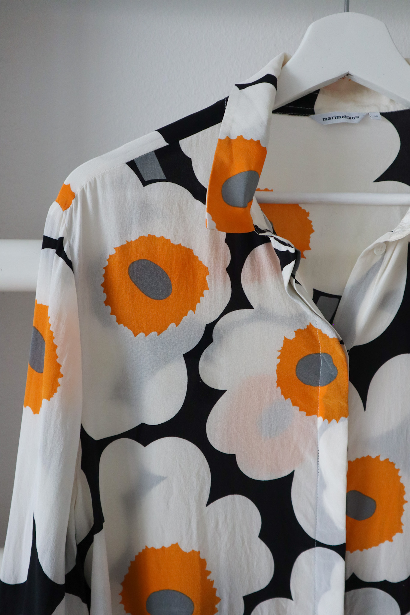 Marimekon silkkisen paitapuseron sain pikkuveljeltäni. Hän on sen aikoinaan ostanut, mutta totesi, ettei enää käytä sitä ja niinpä minä sain sen omakseni. Paita on aivan ihana! Parasta on kierrattää tavaroita perheen ja läheisten kanssa. Yleensä kaikesta kysytäänkin ensin perheeltä ennen kuin laitettaan muualle myyntiin tai viedään kirppikselle.