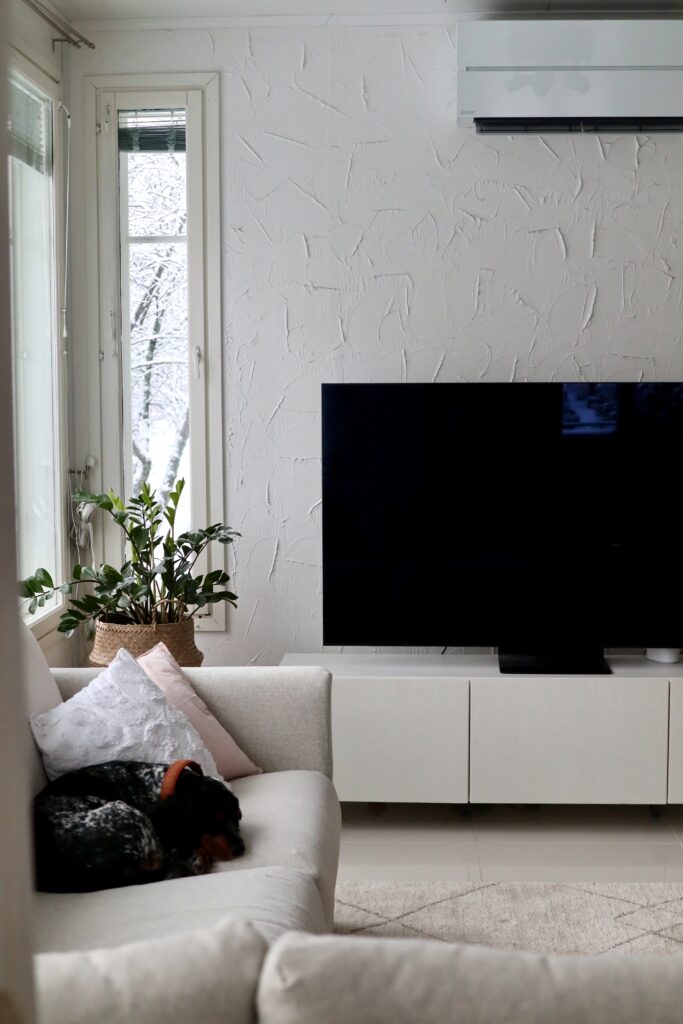Vanhassa kodissa olin teettänyt isot remontit ennen sinne muuttoa, jolloin kaikki oli uutta. Uusi keittiö, uudet märkätilat, hiottu lattia ja juuri maalatut seinäpinnat sekä uudet listat. Vaikka asunnolla oli ikää, kaikki oli uutta. Tämä meidän uusi koti on uudempi kuin edellinen koti, mutta ei uusi. Se on ollut ainoa sellainen asia mitä on ehkä vanhasta kodista kaivannut. Siellä oli uutta ja omannäköistä. Täällä taas aika näkyy pinnoissa, vaikka kotia onkin pidetty hyvänä. Paljon sellaista pientä hommaa on kuitenkin edessä ja varmaan vähän isompaakin sitten joskus.