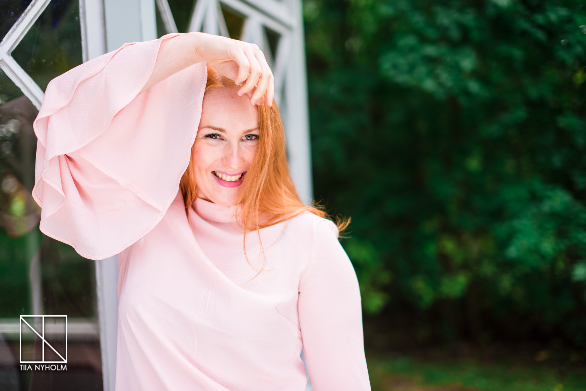 Vaaleanpunainen paita leveillä hihoilla