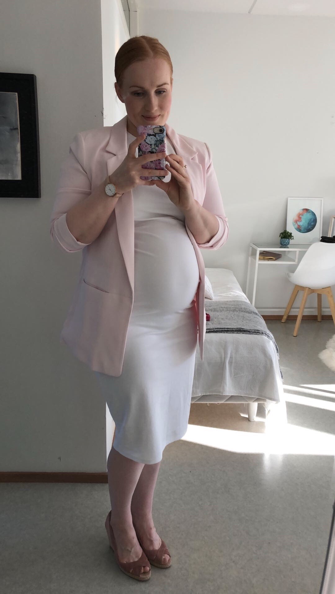Tämä jakku on aivan ihana ja tykkään siitä todella paljon! Olen ostanut sen joskus H&M:ltä ennen raskauttani, eli oletettaen 2017. Olen selvästi ostanut suuren osan vaatteitani vuonna 2017. Se johtuu siitä, että palasin Englannista Suomeen loppuvuodesta 2016 aivan tyhjin käsin, eikä minulla ollut juuri mitään omaisuutta olemassa. Tämä jakku toimii farkkujen kanssa arjessa ja mekkojen kanssa juhlissa. Olen kokenut sen todella monikäyttöisenä. Olin se päällä Enbuske, Veitola ja Salminen ohjelman suorassa tv-lähetyksessä vuonna 2018. Ja tämä jakko oli päällä myös Eemin ristiäisissä.
