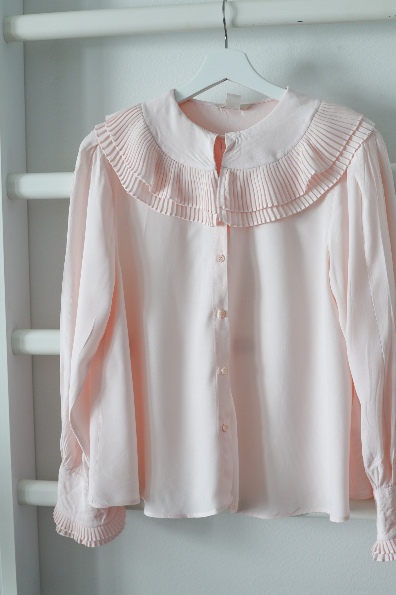 Tämän neuleen löysin vasta kirpputorilta muutamalla eurolla! Olin aivan innoissani tästä löydöstä, sillä minulla on aivan sama neule vaaleansinisenä. Vaaleansinisen neuleen olen ostanut vuonna 2018 alkuvuodesta H&M:ltä. Olen pitänyt sitä paljon ja se on pysynyt todella hyvänä. Aivan ihanaa, että nyt minulla on tämä myös vaaleanpunaisena!